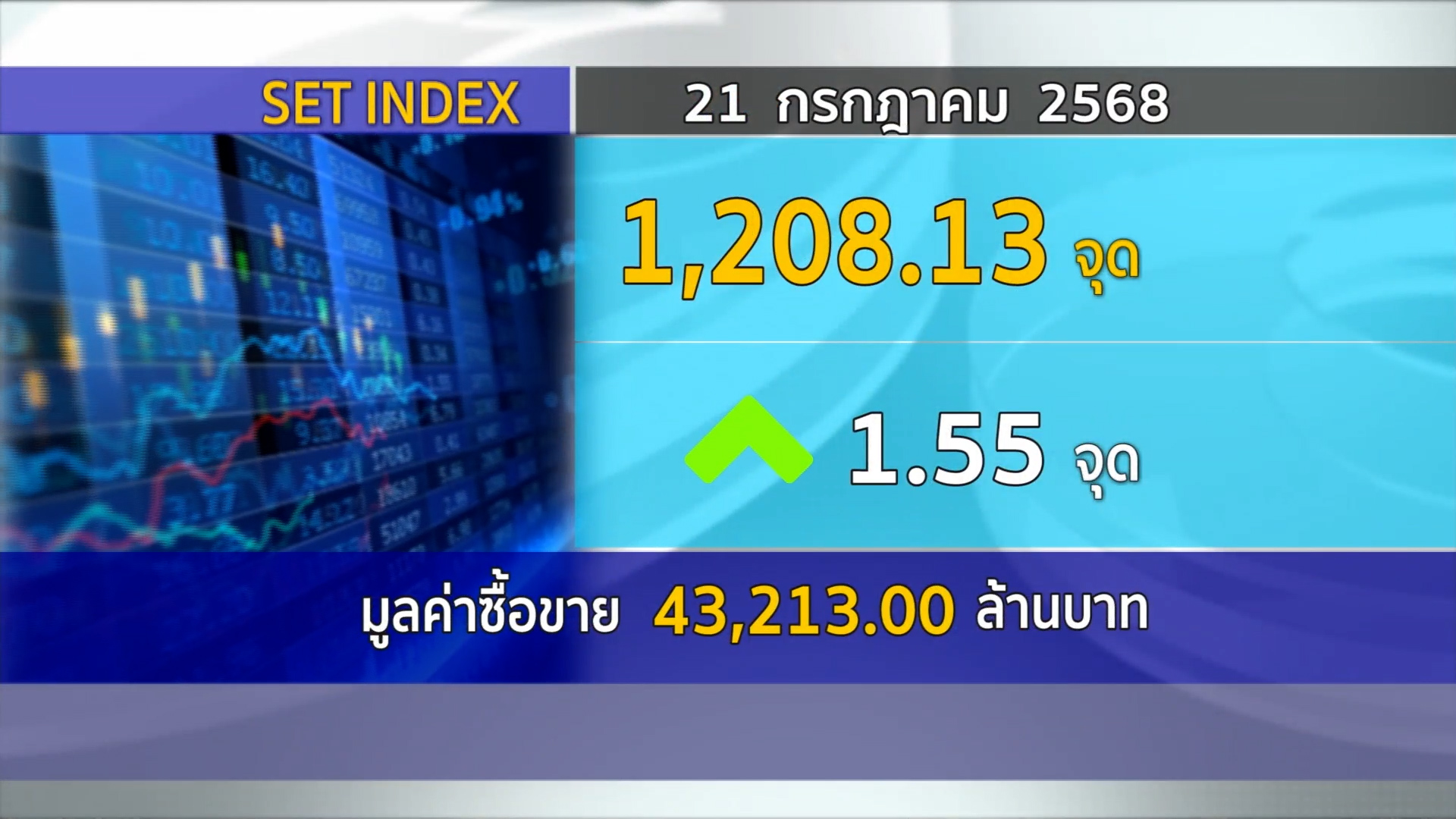 กทม. 21 ก.ค.- ตลาดหลักทรัพย์ฯ ปิดวันนี้ที่ 1,208.13 จุด เพิ่มขึ้น 1.55 จุด (+0.13%) มูลค่าซื้อขาย 43,213 ล้านบาท