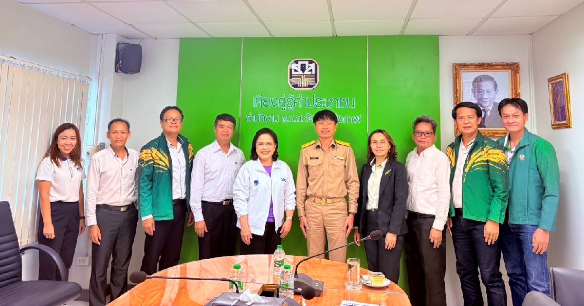 กองทุนการออมแห่งชาติ (กอช.) โดย นางสาวจารุลักษณ์ เรืองสุวรรณ เลขาธิการคณะกรรมการกองทุนการออมแห่งชาติ ลงพื้นที่จังหวัดบึงกาฬ และหนองคาย ระหว่างวันที่ 21-22 กรกฎาคม 2568 เพื่อประชุมหารือร่วมกับธนาคารเพื่อการเกษตรและสหกรณ์การเกษตร (ธ.ก.ส.) ในการขับเคลื่อนภารกิจการส่งเสริมวินัยการออมในกลุ่มแรงงานนอกระบบ พร้อมทั้งประชาสัมพันธ์นวัตกรรมการออมรูปแบบใหม่ “สลาก กอช.” หรือ “หวยเกษียณ” ในการลงพื้นที่จังหวัดบึงกาฬ เมื่อวันที่ 21 กรกฎาคมที่ผ่านมา ได้ร่วมหารือกับ นายชัยประสิทธิ์ สิมมา ผู้อำนวยการสำนักงาน ธ.ก.ส. จังหวัดบึงกาฬ และคณะผู้บริหารระดับจังหวัด เพื่อแลกเปลี่ยนข้อมูลเกี่ยวกับสถานการณ์การออมในพื้นที่ แนวทางการขยายฐานสมาชิก กอช. รวมถึงบทบาทของ ธ.ก.ส. ในการเป็นพันธมิตรสำคัญในการประชาสัมพันธ์สิทธิประโยชน์ของ กอช. ให้เข้าถึงกลุ่มเป้าหมายในระดับพื้นที่อย่างครอบคลุม