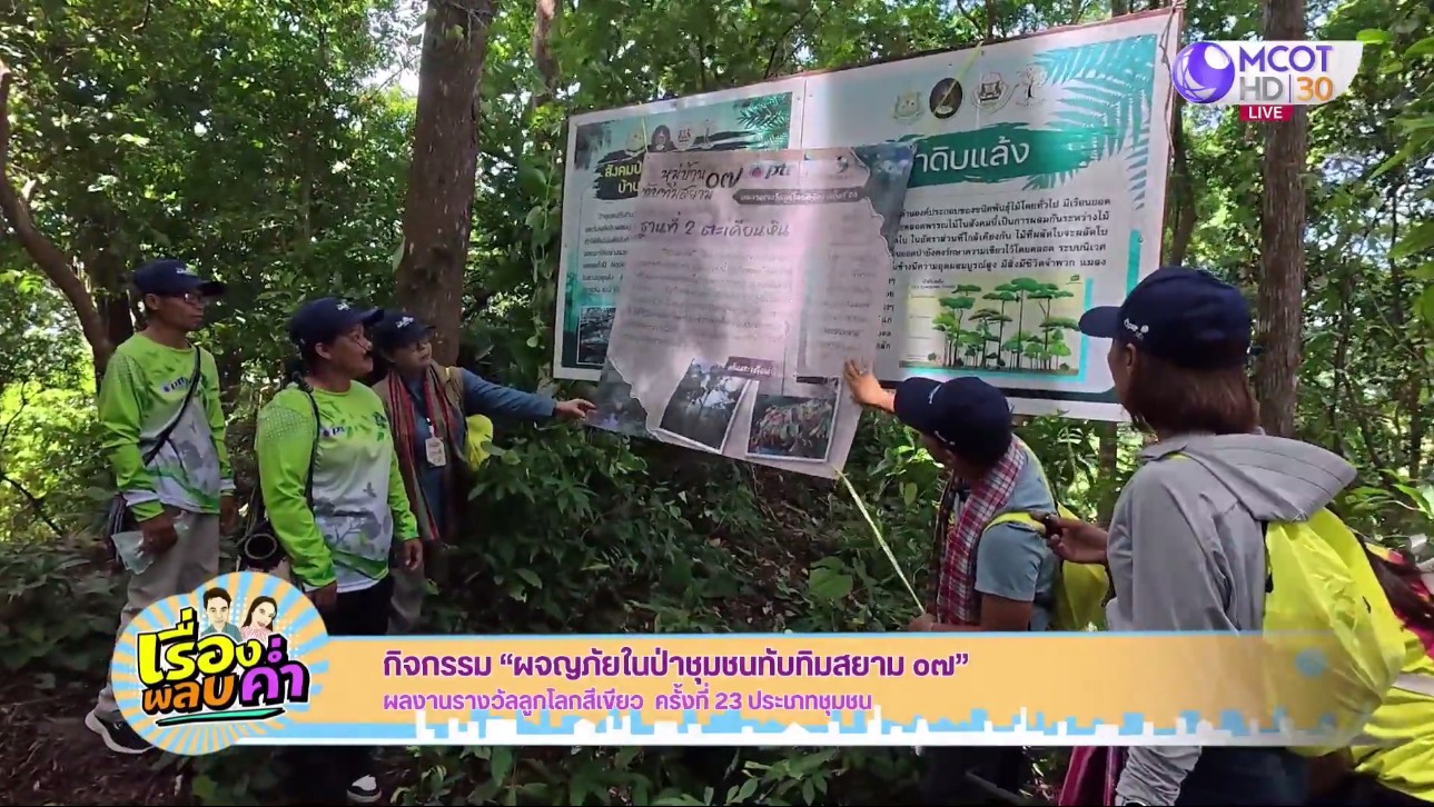 30 ก.ค. – สถาบันลูกโลกสีเขียว ปตท. ร่วมกับรายการ “เรื่องพลบค่ำ” พาแฟนๆ รายการไปร่วมกิจกรรม “ผจญภัยในป่าชุมชนทับทิมสยาม ๐๗” ซึ่งได้รับรางวัลลูกโลกสีเขียว ครั้งที่ 23 ประเภทชุมชน ที่หมู่บ้านทับทิมสยาม ๐๗ จ.ศรีสะเกษ. – สำนักข่าวไทย