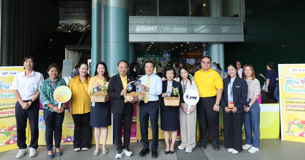 กลุ่ม ปตท. ร่วมกับ กรมการค้าภายใน (DIT) กระทรวงพาณิชย์ เดินหน้าสนับสนุนนโยบายรัฐในการช่วยเหลือเกษตรกรไทยในช่วงผลผลิตล้นตลาดอย่างต่อเนื่อง ในโครงการ “กลุ่ม ปตท. ชวนคุณสร้างรอยยิ้มให้เกษตรกร” โดยเปิดพื้นที่ให้เกษตรกรจำหน่ายผลผลิต อาทิ ลำไย จาก จ.ลำพูน มะพร้าวน้ำหอม จาก จ.ราชบุรี ผักและผลไม้นานาชนิด จาก จ.นครปฐม และ จ.เพชรบุรี ณ โถงอาคาร C บริษัท เอนเนอร์ยี่ คอมเพล็กซ์ จำกัด (EnCo) ระหว่างวันที่ 29 – 30 กรกฎาคม 2568 โดย ดร.ประเสริฐ สินสุขประเสริฐ ปลัดกระทรวงพลังงาน ให้เกียรติร่วมงาน และ ดร.คงกระพัน อินทรแจ้ง ประธานเจ้าหน้าที่บริหารและกรรมการผู้จัดการใหญ่ บริษัท ปตท. จำกัด (มหาชน) ให้การต้อนรับ