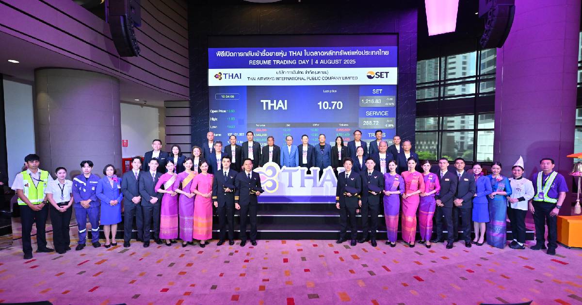 ทั้งนี้ ราคาหุ้น THAI กลับเข้าเทรดวันแรกปิด 10.50 บาท เท่ากับช่วงเปิดเทรด ซึ่งมีมาร์เก็ตแคป 290,000 ล้านบาท จากราคาปิดซิลลิ่ง ที่ 3.32 บาท ในรอบ 5 ปี ตลาดหลักทรัพย์ระบุ วันแรกของการเทรด THAI จะไม่มีการกำหนดราคาสูงสุด-ต่ำสุด (Ceiling & Floor) รวมถึงไม่มีการใช้ Dynamic Price Band และ Auto Pause ราคาหุ้นจะเคลื่อนไหวตามกลไกตลาดเต็มรูปแบบ ขึ้นอยู่กับอุปสงค์ และอุปทาน โดยตลาดหลักทรัพย์ฯ จะนำเกณฑ์ Celling & Floor ปกติ,เกณฑ์ Dynamic Price Band Iเละเกณฑ์ Auto Pause มาใช้กับหลักทรัพย์ THAI ในวันทำกาการถัดไป