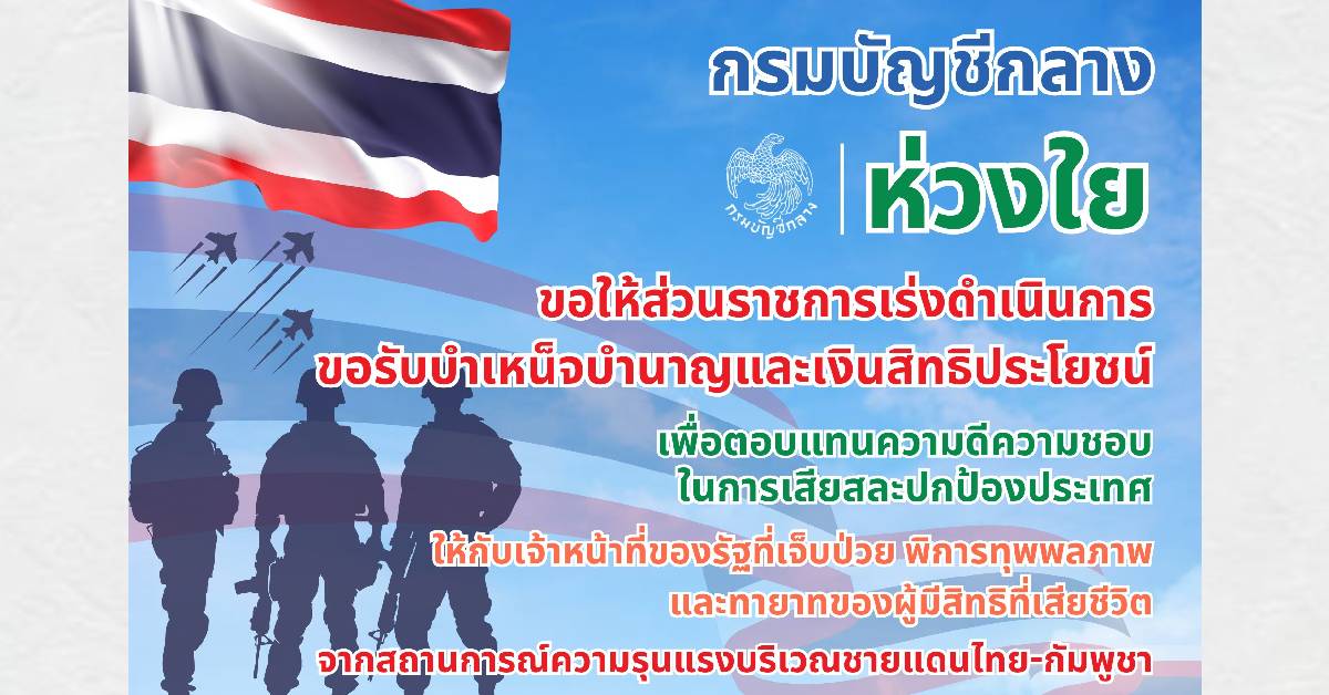 นางแพตริเซีย มงคลวนิช อธิบดีกรมบัญชีกลาง เปิดเผยว่า จากสถานการณ์ความรุนแรงบริเวณชายแดนไทย-กัมพูชา ส่งผลให้เจ้าหน้าที่ของรัฐที่ปฏิบัติหน้าที่ด้วยความเสียสละในสถานการณ์ดังกล่าว ได้รับบาดเจ็บ พิการทุพพลภาพ หรือเสียชีวิต กรมบัญชีกลางในฐานะหน่วยงานที่รับผิดชอบในการพิจารณาอนุมัติสั่งจ่ายบำเหน็จบำนาญ ขอให้ส่วนราชการต้นสังกัดประสานทายาทเพื่อขอรับบำเหน็จบำนาญ และเงินสิทธิประโยชน์ตามหลักเกณฑ์ที่กฎหมายกำหนด ให้แก่เจ้าหน้าที่ของรัฐและทายาทผู้มีสิทธิ ดังนี้