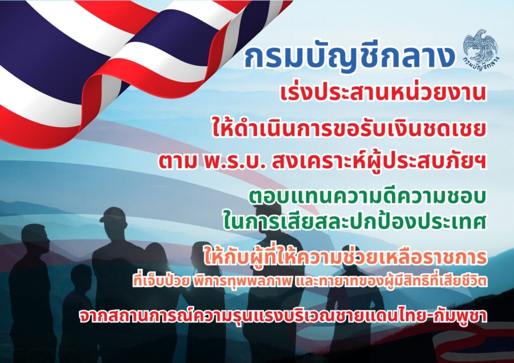 กรุงเทพฯ 6 ส.ค. – กรมบัญชีกลาง เร่งส่วนราชการ ขอรับบำเหน็จบำนาญ ตอบแทน ตำรวจ ทหาร ปกป้องประเทศ ชายแดนไทย-กัมพูชา