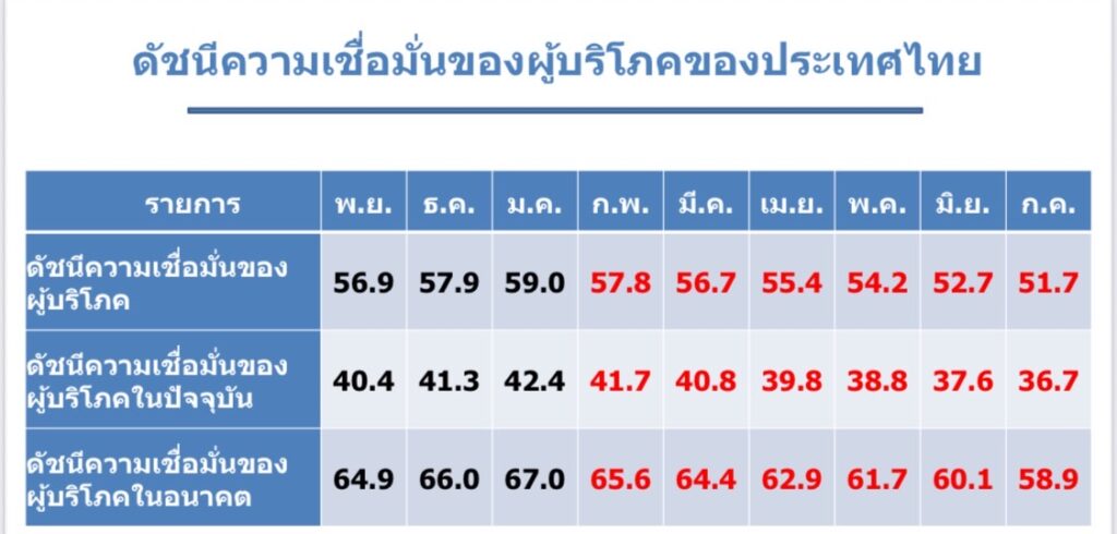 กรุงเทพฯ 7 ส.ค. – ดัชนีความเชื่อมั่นของผู้บริโภค ก.ค. 68 ลดลงทุกรายการต่อเนื่อง เป็นเดือนที่ 6 ต่ำสุดในรอบ 31 เดือน