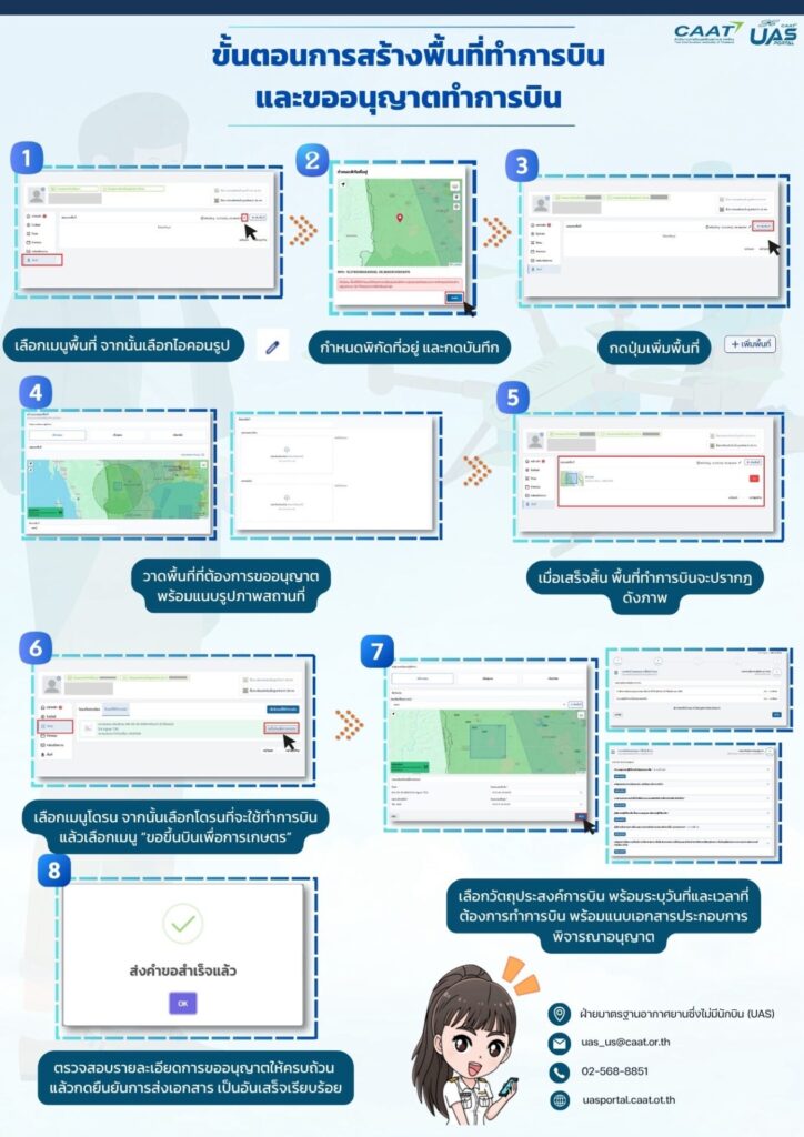 - ขั้นตอนการขึ้นทะเบียนผู้บังคับเเละจดทะบียนโดรน : https://uasportal.caat.or.th/infographic https://www.facebook.com/share/p/1A7PsALsTU/