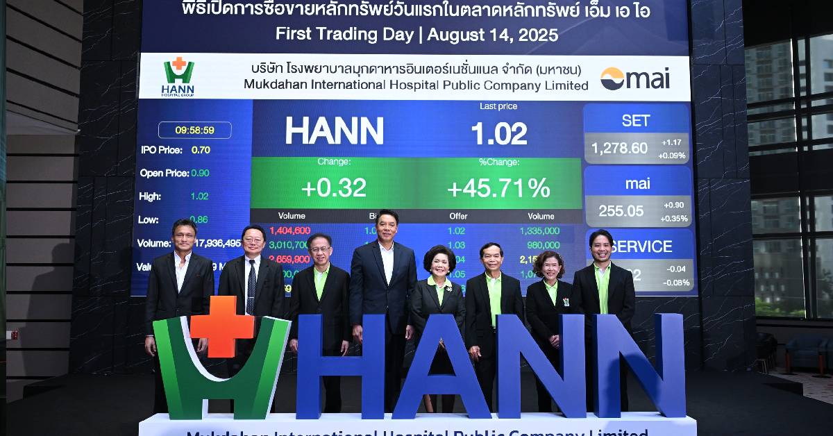 นางประภาศรี สุฉันทบุตร ประธานเจ้าหน้าที่บริหาร บริษัท โรงพยาบาลมุกดาหารอินเตอร์ เนชั่นแนล จำกัด (มหาชน) หรือ HANN เปิดเผยว่า บริษัทฯ พร้อมเข้าซื้อขายเป็นวันแรกในตลาดหลักทรัพย์ เอ็ม เอ ไอ (mai) ในวันที่ 14 สิงหาคม 2568 ซึ่งนับเป็นอีกก้าวสำคัญสู่การเติบโตอย่างยั่งยืน และพร้อมขยาย การเติบโต ต่อยอดธุรกิจได้ตามเป้าหมายที่วางไว้ได้