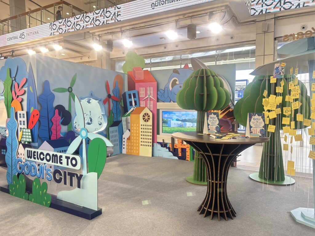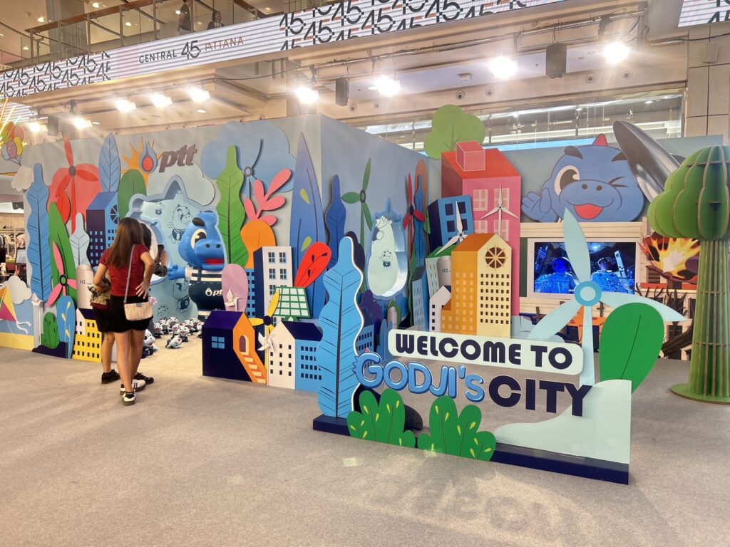 โดย บริษัท ปตท.จำกัด (มหาชน) หรือ ปตท. ในฐานะบริษัทพลังงานแห่งชาติ ดำเนินธุรกิจภายใต้วิสัยทัศน์ “ปตท. แข็งแรงร่วมกับสังคมไทยและเติบโตในระดับโลกอย่างยั่งยืน” ได้นำ ก๊อดจิ (GODJI) คาแรกเตอร์ที่ได้รับฉายาว่าเป็น “Energy Hero” หรือ “ทูตพลังงาน” ของ ปตท. ที่มีอุปนิสัยร่าเริง สดใสน่ารัก เป็นมิตร อยากรู้อยากเห็นและชอบการผจญภัย รวมถึงชอบประหยัดพลังงาน รักษ์โลก รักษ์สิ่งแวดล้อม มาร่วมสร้างสีสันอย่างใกล้ชิด นอกจาก GODJI แล้ว ในปีนี้ ปตท. ยังมี “เนโซ่” (NEZO) ซึ่งเป็นเอเลี่ยนจากจักรวาลอันไกลโพ้น เดินทางมาอยู่ดาวโลกเพื่อร่วมมือกับ GODJI สานต่อภารกิจสร้างความเข้าใจเรื่อง “พลังงานและความยั่งยืน” พร้อมกับมีหนังโฆษณาและเกม เพื่อสร้างแรงบันดาลใจให้คนไทยหันมาดูแล “โลก” และมุ่งสู่ Net Zero เช่นเดียวกับ ปตท. ที่จะสร้างความมั่นคงทางพลังงาน พร้อมกับการลดคาร์บอน เพื่อโลกที่ยั่งยืนอย่างสมดุล
