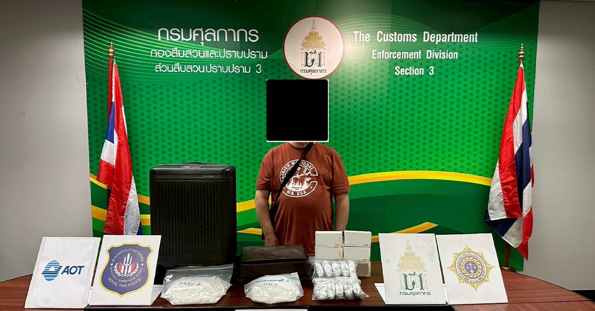 นายพันธ์ทอง ลอยกุลนันท์ ที่ปรึกษาด้านการพัฒนาและบริหารการจัดเก็บภาษี ในฐานะโฆษก กรมศุลกากร เปิดเผยว่า กรมศุลกากรเพิ่มความเข้มงวดในการเฝ้าระวังการลักลอบนำเข้าและส่งออกยาเสพติดในทุกช่องทาง ซึ่งในวันนี้ (17 สิงหาคม 2568) กรมศุลกากร โดยกองสืบสวนและปราบปราม ได้บูรณาการร่วมกับหน่วยสกัดกั้นยาเสพติดทางท่าอากาศยานนานาชาติ (Airport Interdiction Task Force : ATIF) สำนักงานคณะกรรมการป้องกันและปราบปรามยาเสพติด (ป.ป.ส.) และกองบัญชาการตำรวจปราบปรามยาเสพติด (บช.ปส.) ร่วมกันวิเคราะห์ข้อมูลการข่าว พบว่ามีผู้โดยสารชาย ชาวออสเตรเลีย อายุ 68 ปี มีความเสี่ยงในการลักลอบนำยาเสพติดให้โทษออกไปนอกราชอาณาจักร โดยมีกำหนดเดินทางออกจากท่าอากาศยานสุวรรณภูมิ ประเทศไทย ปลายทางท่าอากาศยานนานาชาติเพิร์ท เมืองเพิร์ท ประเทศออสเตรเลีย เจ้าหน้าที่ชุดตรวจค้นจับกุมจึงนำกระเป๋าสัมภาระของผู้โดยสารผ่านเครื่องเอกซเรย์ พบสิ่งผิดปกติในกระเป๋าเดินทางทรงแข็ง สีดำ