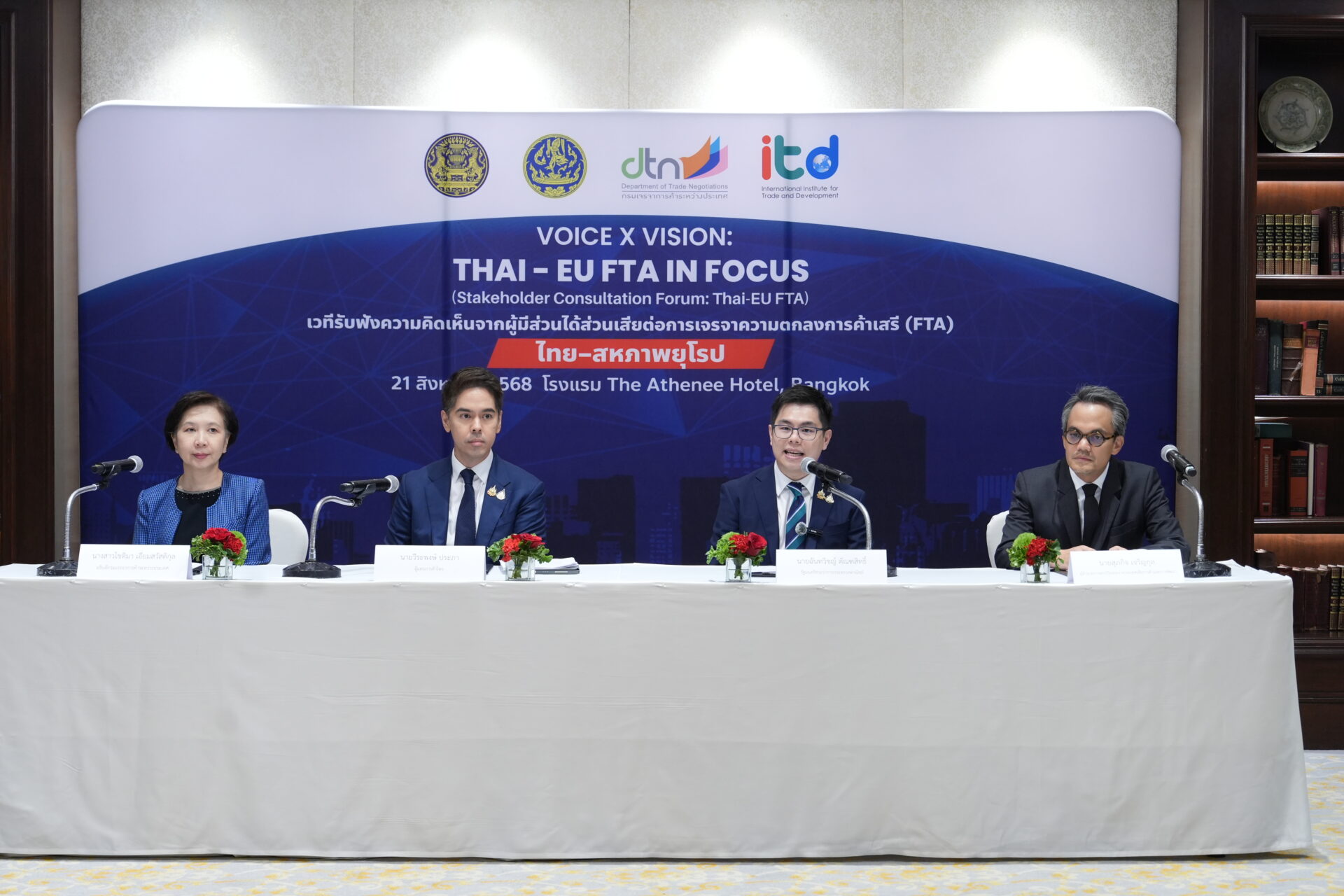 FTA ฉบับนี้มีความสำคัญเชิงยุทธศาสตร์ และจะเป็น FTA มาตรฐานสูง ที่ครอบคลุมเศรษฐกิจโลกสมัยใหม่ อาทิ ประเด็นทรัพย์สินทางปัญญา มาตรฐานแรงงาน การจัดซื้อจัดจ้างภาครัฐ การค้าดิจิทัล ตลอดจนสิ่งแวดล้อมและความยั่งยืน กระทรวงพาณิชย์จึงได้มอบหมายให้กรมเจรจาการค้าระหว่างประเทศ และ ITD จัดเวทีดังกล่าว เพื่อเปิดโอกาสให้ทุกภาคส่วน ทั้งหน่วยงานรัฐ เกษตรกร ผู้ประกอบการ SMEs ภาคเอกชนรายใหญ่ ภาควิชาการ การเมือง และภาคประชาสังคม ร่วมแสดงความคิดเห็นและสะท้อนความสนใจในการเจรจา FTA ไทย–EU เพื่อกำหนดทิศทางการเจรจาอย่างมีเอกภาพและสมดุล