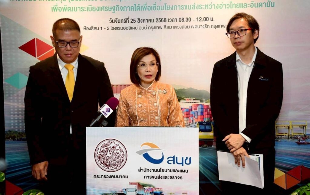 กรุงเทพ 25 ส.ค. – “มนพร” เปิดสัมมนาสรุปผลการศึกษา “โครงการแลนด์บริดจ์” มอบ “สนข.” เดินหน้าประกาศประกวดราคาหานักลงทุน ผลักดันโครงการให้เกิดขึ้นอย่างเป็นรูปธรรม เพื่อยกระดับเศรษฐกิจของประเทศ ดึงภาครัฐ – เอกชน – ประชาชน ร่วมเสนอแนะให้ครอบคลุมทุกมิติ