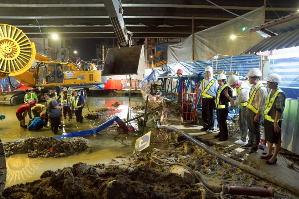 กรุงเทพฯ 28 ส.ค. – น้ำประปาไหลอ่อนหลายพื้นที่ บริเวณถนนราชปรารภต้องซ่อมท่อประธานที่โดนเจาะแตกรั่วจากอุบัติเหตุงานก่อสร้างของสาธารณูปโภค