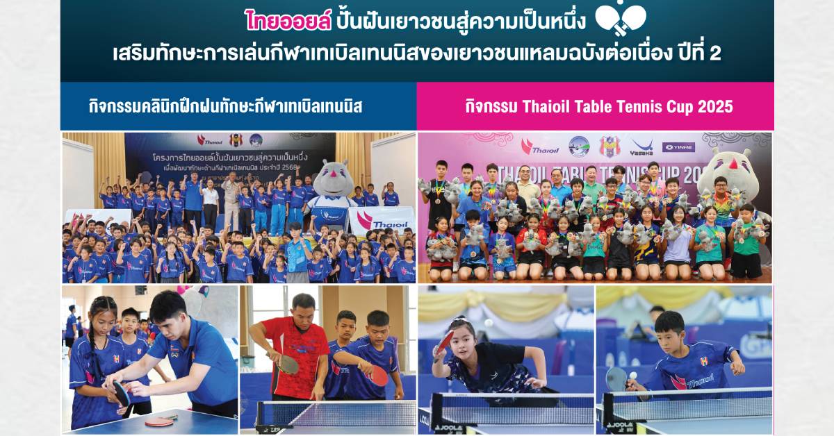 บริษัท ไทยออยล์ จำกัด (มหาชน) แจ้งว่า เมื่อเร็วๆนี้ได้ ร่วมมือกับสมาคมกีฬาเทเบิลเทนนิสแห่งประเทศไทยและเทศบาลนครแหลมฉบัง จัดโครงการ “ไทยออยล์ปั้นฝันเยาวชนสู่ความเป็นหนึ่ง เพื่อพัฒนาทักษะด้านกีฬาเทเบิลเทนนิส” ประจำปี 2568 โดยโครงการฯ นี้จัดขึ้นอย่างต่อเนื่องเป็นปีที่ 2 เพื่อเพิ่มพูนทักษะและสร้างแรงบันดาลใจให้เยาวชนในพื้นที่แหลมฉบังพร้อมก้าวสู่เส้นทางนักกีฬาอาชีพ ณ ศาลาประชาคมทุ่งกราด เทศบาลนครแหลมฉบัง จังหวัดชลบุรี