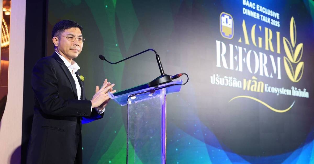 ธนาคารเพื่อการเกษตรและสหกรณ์การเกษตร (ธ.ก.ส.) ตระหนักถึงความสำคัญในการสร้างความเข้มแข็งให้กับธนาคารและลูกค้า ได้จัดงานสัมมนา “BAAC EXCLUSIVE DINNER TALK 2025 AGRI REFORM : ปรับวิธีคิด พลิก ECOSYSTEM” ซึ่งถือเป็นเวทีสำคัญในการเชื่อมโยงทุกภาคส่วน ทั้งภาครัฐ เอกชน และผู้มีส่วนเกี่ยวข้อง เพื่อแลกเปลี่ยนมุมมอง จุดประกายแนวคิด และร่วมกันสร้างความเข้มแข็งให้กับเกษตรกรและชุมชนไทยในอนาคต โดยได้รับเกียรติจากนายประยูร อินสกุล ปลัดกระทรวงเกษตรและสหกรณ์ ในฐานะรองประธานกรรมการ ธ.ก.ส. เป็นประธานกล่าวเปิดงาน ซึ่งจัดขึ้นที่ ธ.ก.ส. สำนักงานใหญ่ เมื่อวันที่ 1 กันยายน 2568