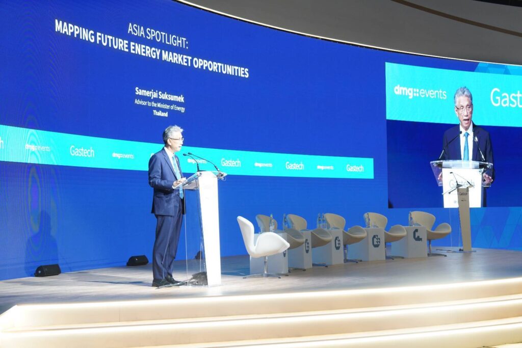 นายเสมอใจ สุขสุเมฆ ที่ปรึกษารัฐมนตรีว่าการกระทรวงพลังงาน กล่าวสุนทรพจน์ในงาน Gastech 2025 ณ เมืองมิลาน ประเทศอิตาลี โดยได้เน้นย้ำถึงบทบาทของประเทศไทยในฐานะผู้เล่นสำคัญในตลาดก๊าซธรรมชาติเหลว (LNG) ของเอเชีย ซึ่งแสดงให้เห็นว่า ไทยมีศักยภาพในหลายๆ ด้าน ทั้งด้านเทคโนโลยี นวัตกรรม ที่ตั้งเชิงยุทธศาสตร์ และความพร้อมด้านบุคลากร ซึ่งในอนาคต โลกของพลังงานจะถูกกำหนดโดยภูมิภาคเอเชีย เนื่องจากเป็นตลาด LNG ที่ใหญ่ที่สุดในปัจจุบัน โดยความต้องการพลังงานในภูมิภาคยังคงเติบโตอย่างต่อเนื่อง จากเศรษฐกิจที่แข็งแกร่งและอุตสาหกรรมที่ขยายตัว ซึ่งนอกจากจะแสดงให้เห็นถึงศักยภาพที่แข็งแกร่งของไทยแล้ว ยังแสดงให้เห็นถึงความมั่นคงทางด้านพลังงานที่กระทรวงพลังงานได้วางแผนไว้