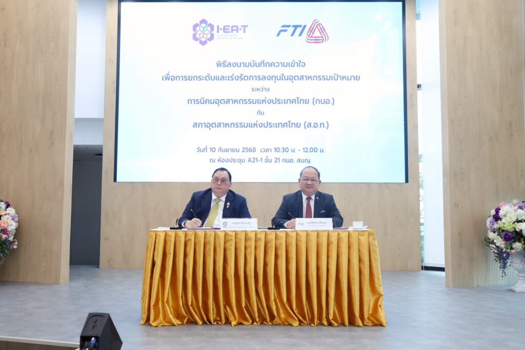 กรุงเทพฯ 10 ก.ย. – การนิคมอุตสาหกรรมแห่งประเทศไทย (กนอ.) สภาอุตสาหกรรมแห่งประเทศไทย (ส.อ.ท.) ร่วมลงนาม MOU เพื่อยกระดับและเร่งรัดการลงทุนในกลุ่มอุตสาหกรรมเป้าหมาย ให้เป็น New Growth Engine ของประเทศ และนำไปสู่การยกระดับเศรษฐกิจไทยโดยรวม