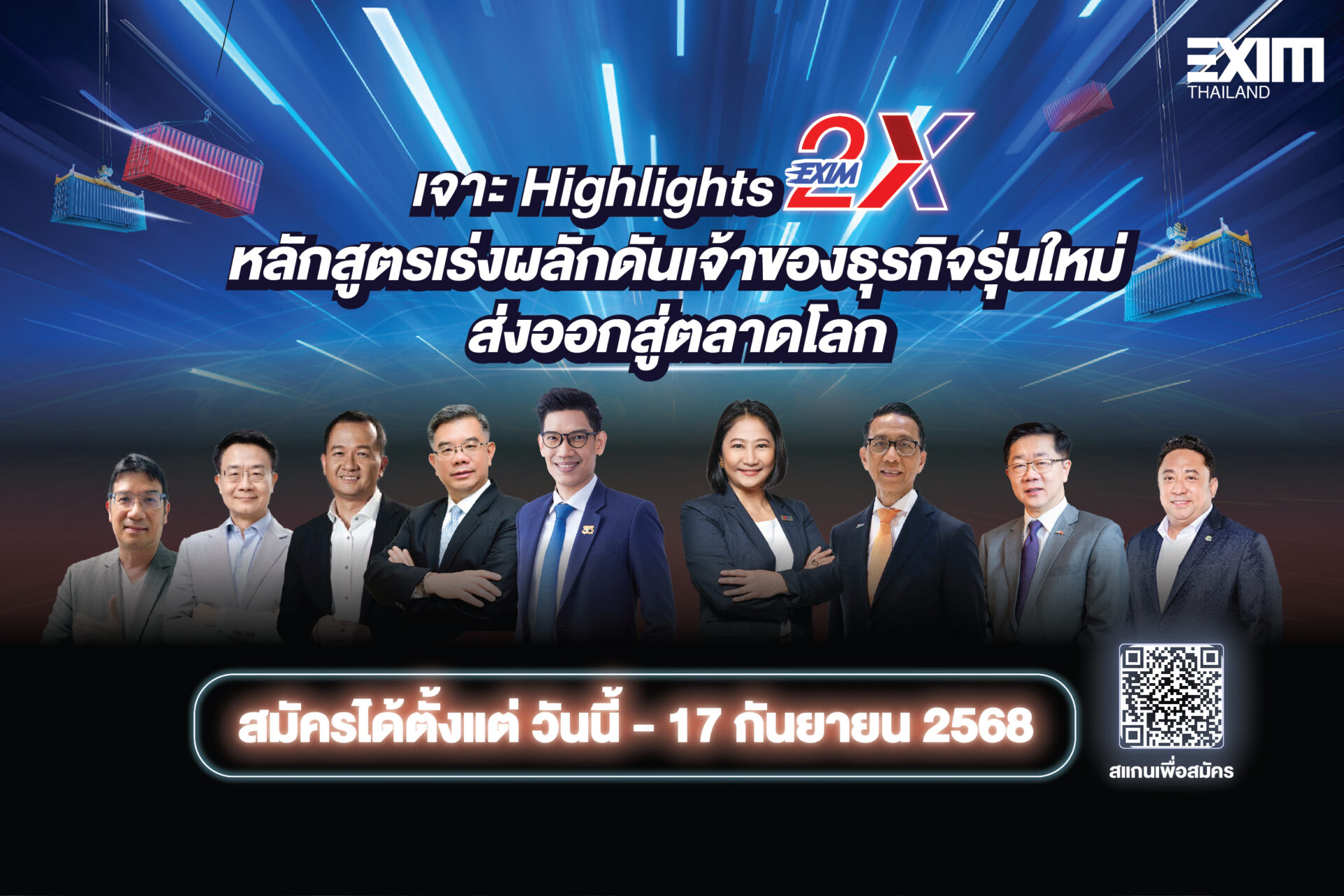 ธนาคารเพื่อการส่งออกและนำเข้าแห่งประเทศไทย (EXIM BANK) ขอเชิญผู้ประกอบการรุ่นใหม่ เข้าร่วมอบรมหลักสูตร EXIM 2X เพื่อขยายเครือข่าย ต่อยอดความรู้ วางแผนกลยุทธ์สู่เวทีการค้าโลก สมัครได้แล้วตั้งแต่บัดนี้-17 กันยายน 2568 (ประกาศผลการคัดเลือกเพื่อเข้าสู่รอบ Pitching วันที่ 19 กันยายน 2568) เงื่อนไขการสมัคร