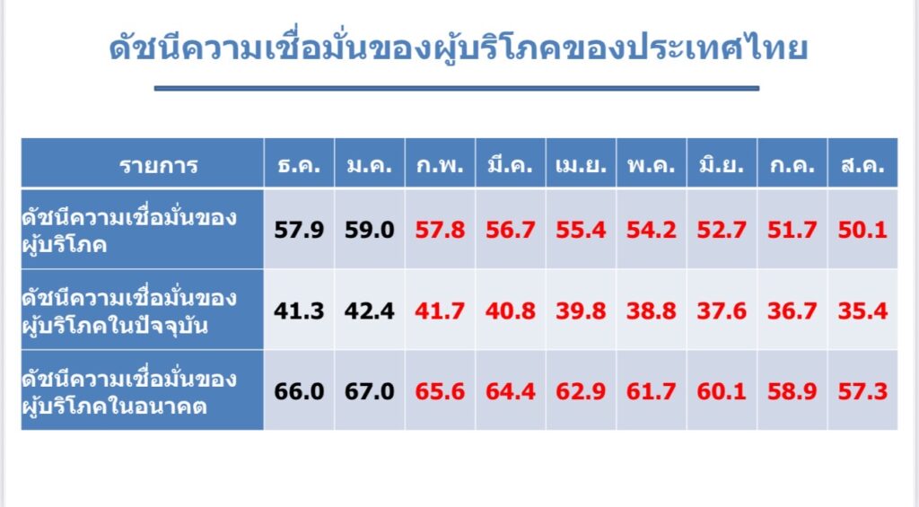 กรุงเทพฯ 11 ก.ย. – ดัชนีความเชื่อมั่นผู้บริโภคต่ำต่อเนื่อง 7 เดือน และต่ำสุดในรอบ 32 เดือน เหตุความไม่แน่นอนการเมือง หลัง “แพทองธาร” พ้นนายกฯ -สงครามการค้าภาษีสหรัฐฯ-ปัญหาชายแดนไทยกัมพูชา