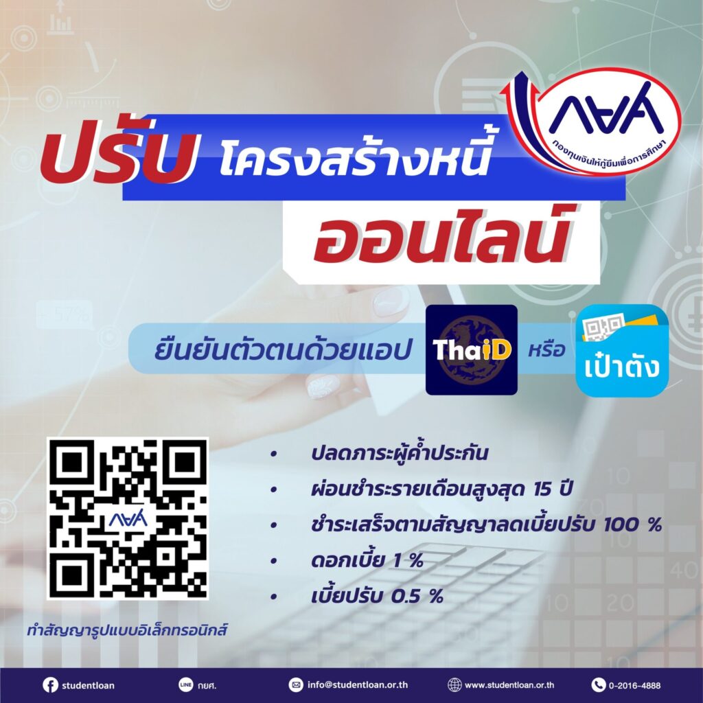ดร.นันทวัน วงศ์ขจรกิตติ ผู้จัดการกองทุนเงินให้กู้ยืมเพื่อการศึกษา ได้เปิดเผยว่า “จากการที่ กยศ. ได้เปิดโอกาสให้ผู้กู้ยืมเงินทำสัญญาปรับโครงสร้างหนี้ออนไลน์ด้วยตนเองผ่านทางเว็บไซต์ กยศ. เพื่อให้ผู้กู้ยืมเงินได้สามารถทำสัญญาปรับโครงสร้างหนี้ได้ง่าย สะดวก รวดเร็ว และลดค่าใช้จ่ายในการเดินทาง โดยขณะนี้ กยศ.ได้เพิ่มช่องทางในการยืนยันตัวตนและการลงนามอิเล็กทรอนิกส์ผ่านแอพพลิเคชั่นเป๋าตัง นอกเหนือจากแอปพลิเคชัน ThaID ทั้งนี้ ผู้กู้ยืมเงินสามารถดำเนินการทำสัญญาปรับโครงสร้างหนี้ได้ด้วยตนเองผ่านเว็บไซต์ www.studentloan.or.th โดยที่ผ่านมา มีผู้กู้ยืมเงินทำสัญญาปรับโครงสร้างหนี้ทั้งในรูปแบบกระดาษและรูปแบบอิเล็กทรอนิกส์แล้วกว่า 703,000 บัญชี