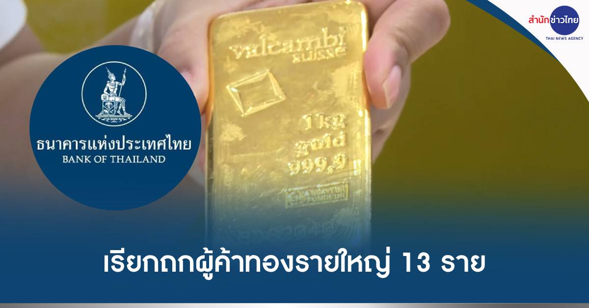 กทม. 13 ก.ย.-ธปท. เรียกถกผู้ค้าทองรายใหญ่ 13 ราย หารือจันทร์นี้ หลัง กกร.ตั้งข้อสังเกตส่งออกทองคำไปกัมพูชาพุ่งสูงผิดปกติ