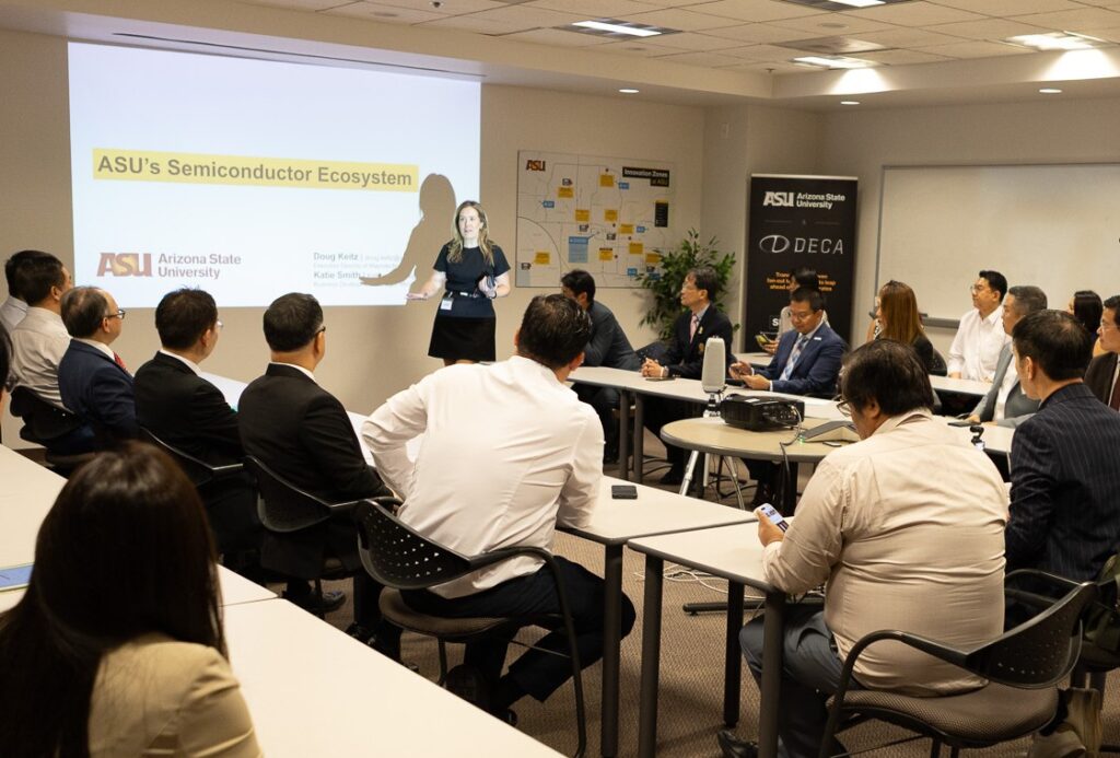 โดยเซมิคอนดักเตอร์ กลายมาเป็นอุตสาหกรรมยุทธศาสตร์ของโลก เพราะเป็นหัวใจสำคัญของการผลิตหน่วยประมวลผล และชิ้นส่วนอิเล็กทรอนิกส์ระดับสูง ปัจจุบันมีมูลค่าตลาดโลกกว่า 6 แสนล้านเหรียญสหรัฐและคาดว่าจะเพิ่มเป็นกว่า 1 ล้านล้านเหรียญสหรัฐ ภายในปี 2030 จากความต้องการชิปรุ่นใหม่ในอุตสาหกรรมต่าง ๆ เช่น AI ดาต้าเซ็นเตอร์ ยานยนต์สมัยใหม่ สมาร์ทโฟน คอมพิวเตอร์ ระบบอัตโนมัติและหุ่นยนต์ โดยสหรัฐอเมริกาถือเป็นผู้นำในเกือบทุกเซกเมนต์ ไม่ว่าจะเป็นชิปประมวลผล ชิปสำหรับ AI ชิปด้านการส่งสัญญาณต่าง ๆ เพื่อตอบโจทย์ด้านการพัฒนาบุคลากรไทย คณะได้เข้าหารือกับมหาวิทยาลัยแห่งรัฐแอริโซนา (ASU) ซึ่งได้รับการจัดอันดับเป็นมหาวิทยาลัยนวัตกรรมอันดับ 1 ของสหรัฐฯ และเป็น 1 ใน 3 สถาบันที่รัฐบาลสหรัฐฯ เลือกให้เป็นที่ตั้งศูนย์วิจัยเทคโนโลยีเซมิคอนดักเตอร์แห่งชาติ รวมทั้งเป็นมหาวิทยาลัยที่ได้รับเงินสนับสนุนเพื่อพัฒนาเซมิคอนดักเตอร์ภายใต้ CHIPS Act มากที่สุดในสหรัฐฯ ทั้งนี้ บีโอไอเข้าร่วมเป็นสักขีพยานในพิธีลงนาม MOU ระหว่างกระทรวง อว. และ ASU ซึ่งครอบคลุมการพัฒนาหลักสูตร การวิจัยร่วม การแลกเปลี่ยนอาจารย์–นักศึกษา การฝึกอบรมเพื่อ Upskill/Reskill วิศวกรและแรงงาน รวมถึงการจัดตั้งศูนย์ความเป็นเลิศด้านเซมิคอนดักเตอร์ในไทย