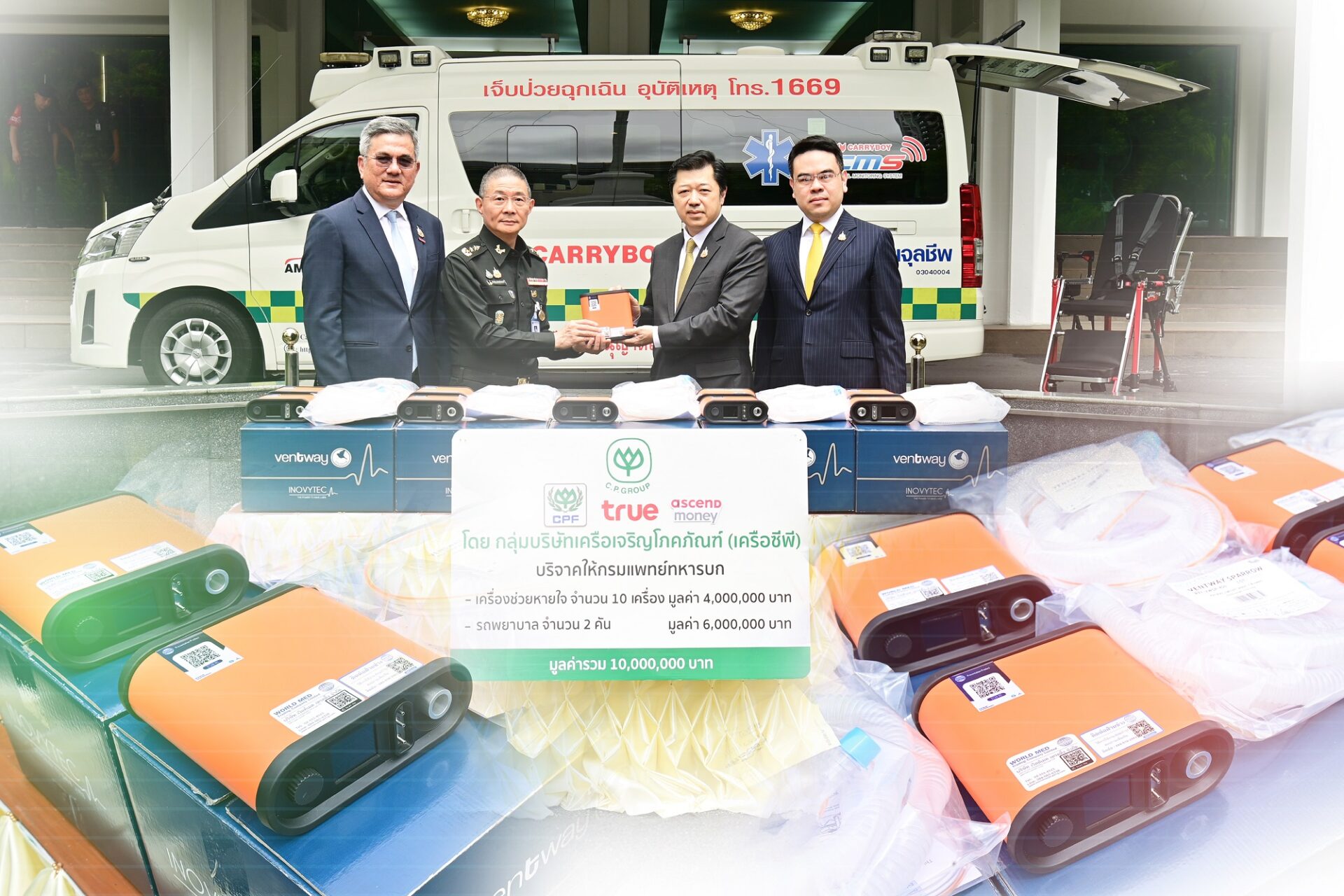 นายศุภชัย เจียรวนนท์ ประธานคณะผู้บริหาร เครือซีพี พร้อมบริษัทในเครือ ได้แก่ ซีพีเอฟ, ทรู คอร์ปอเรชั่น และแอสเซนด์ มันนี่ ได้ส่งมอบอุปกรณ์การแพทย์นวัตกรรมใหม่ มูลค่า 10 ล้านบาท ประกอบด้วย เครื่องช่วยหายใจพกพาสมรรถนะสูง Ventway ขนาดเล็กที่สุดในโลก 10 เครื่อง และ รถพยาบาลอัจฉริยะ 2 คัน ให้แก่กรมการแพทย์ทหารบก กองทัพบก เพื่อเสริมศักยภาพบุคลากรทางการแพทย์ชายแดนในการดูแลผู้ป่วยฉุกเฉิน