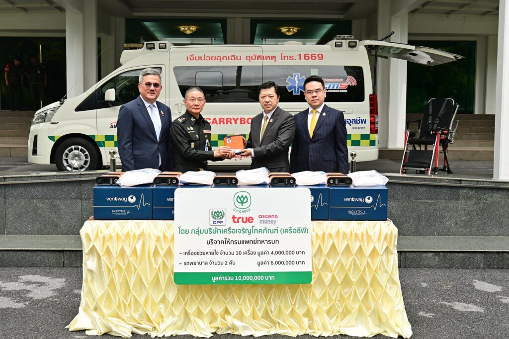 นายศุภชัย เจียรวนนท์ ประธานคณะผู้บริหาร เครือเจริญโภคภัณฑ์ กล่าวว่า “การสนับสนุนด้านการแพทย์ในครั้งนี้ไม่ใช่เพียงการมอบอุปกรณ์ แต่คือการเสริมพลังให้บุคลากรทางการแพทย์ ทหาร และประชาชนที่อยู่แนวชายแดนได้รับการดูแลอย่างทั่วถึงและทันเวลา โดยรถพยาบาลจะถูกส่งต่อไปยังโรงพยาบาลค่ายวีรวัฒน์โยธิน จังหวัดสุรินทร์ และโรงพยาบาลค่ายสมเด็จเจ้าพระยามหากษัตริย์ศึก จังหวัดบุรีรัมย์ ส่วนเครื่องช่วยหายใจพกพาจะกระจายสู่กองพันเสนารักษ์ หน่วยแพทย์ และโรงพยาบาลชายแดน”