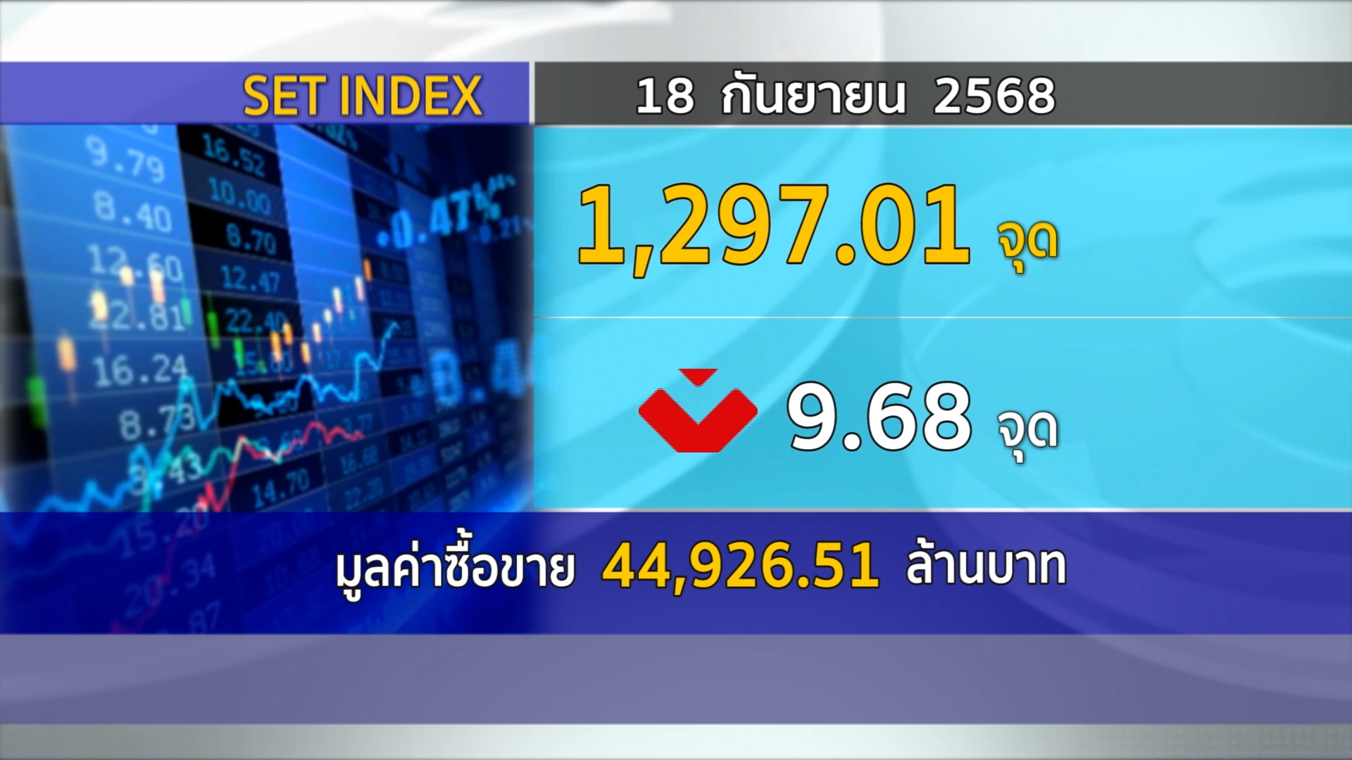 กทม. 18 ก.ย.- ตลาดหลักทรัพย์ฯ ปิดวันนี้ 1,297.01 จุด ลดลง 9.68 จุด (-0.74%) มูลค่าซื้อขายราว 44,929.51 ล้านบาท