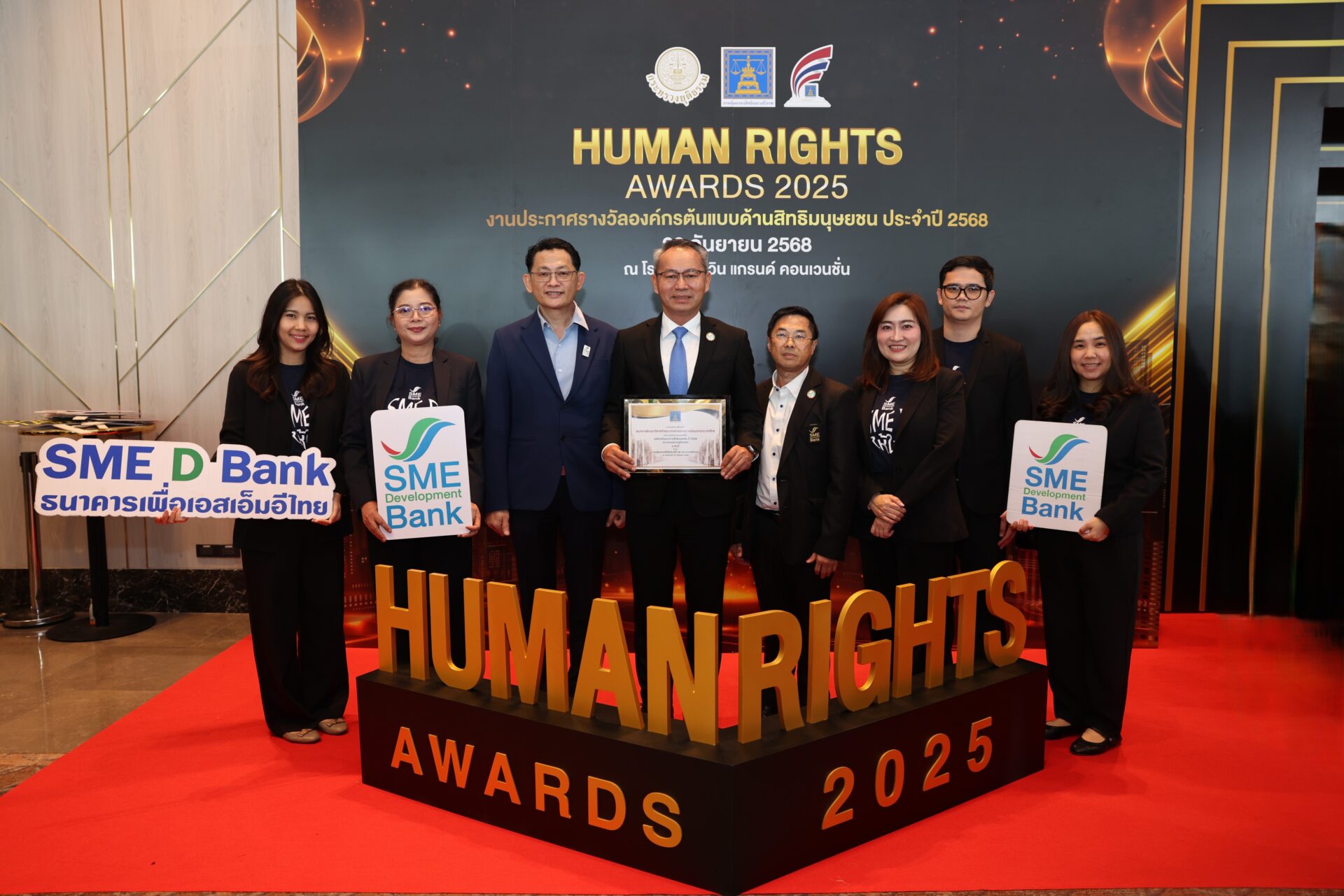 นายพิชิต มิทราวงศ์ กรรมการผู้จัดการ ธนาคารพัฒนาวิสาหกิจขนาดกลางและขนาดย่อมแห่งประเทศไทย (ธพว.) หรือ SME D Bank รับรางวัลทรงเกียรติ “องค์กรต้นแบบด้านสิทธิมนุษยชน ประจำปี 2568” ประเภท “ดี” องค์กรรัฐวิสาหกิจ จากกรมคุ้มครองสิทธิและเสรีภาพ กระทรวงยุติธรรม จากการดำเนินงานโดดเด่นขององค์กรที่ตระหนักถึงสิทธิมนุษยชนอย่างเป็นรูปธรรม ส่งเสริมและสนับสนุนการปฏิบัติตามหลักการด้านสิทธิมนุษยชนในทุกมิติ มุ่งเน้นการสร้างโอกาสอย่างเท่าเทียม เป็นธรรม และการมีส่วนร่วมของผู้มีส่วนได้ส่วนเสียทุกภาคส่วน ตลอดจนส่งเสริมสิทธิมนุษยชนในภาคธุรกิจอย่างต่อเนื่อง อันเป็นปัจจัยสำคัญทำให้องค์กร และผู้ประกอบการเอสเอ็มอี เติบโตอย่างเข้มแข็งและยั่งยืนบนพื้นฐานของความรับผิดชอบต่อสังคม