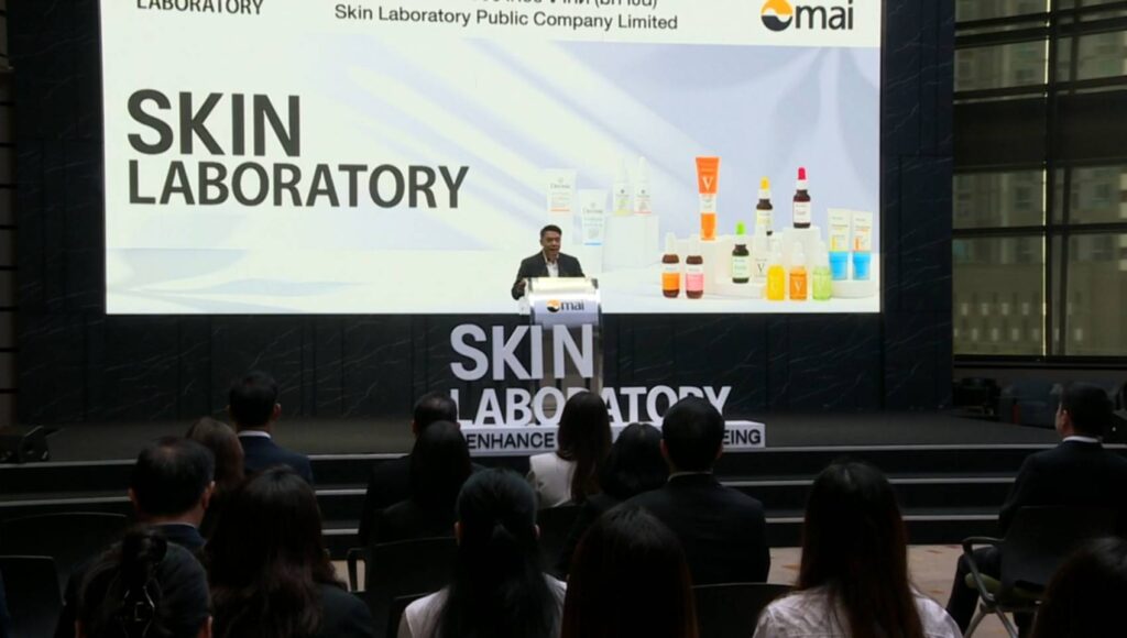 นายชาญวิทย์ เขียวนาวาวงศ์ษา ประธานเจ้าหน้าที่บริหาร บมจ. สกิน ลาบอราทอรี่ (SKIN) เปิดเผยว่าการเข้าระดมทุนในตลาดหลักทรัพย์ เอ็ม เอ ไอ (mai) เป็นวันแรก ถือว่าได้รับความสนใจจากนักลงทุนเป็นอย่างดี โดยเป็นอีกก้าวสำคัญในการสร้างการเติบโตอย่างต่อเนื่องให้กับบริษัท ซึ่งตลอดระยะเวลากว่า 12 ปี บริษัทมีการเติบโตอย่างต่อเนื่อง ทั้งในแง่ของผลการดำเนินงาน และการเป็นที่ยอมรับของผู้บริโภค ตั้งเป้าหมายการเติบโตมากกว่า 2 เท่าใน 3 ปี โดยแผนการดำเนินงานในช่วงไตรมาสสุดท้ายซึ่งเป็นไฮซีซันของธุรกิจ บริษัทเตรียมออกผลิตภัณฑ์ใหม่ทั้งสกินแคร์และ Makeup Careภายใต้แบรนด์ Skinsista และแบรนด์เวชสำอางDermie เพิ่มอีก 12 SKUs ขยายช่องทางการจำหน่ายออฟไลน์ – ออนไลน์ เพื่อเพิ่มความสะดวกให้กับผู้บริโภคในการเลือกซื้อผลิตภัณฑ์และเข้าถึงฐานลูกค้าใหม่ได้มากขึ้น