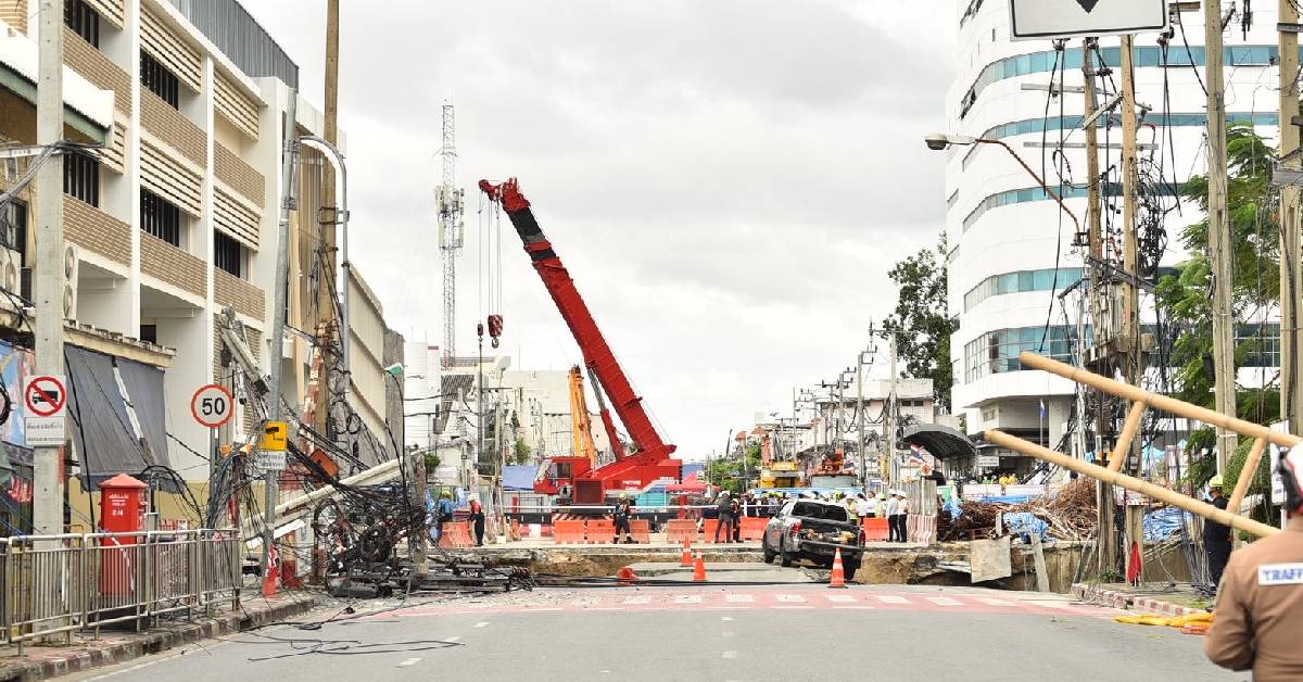 กรุงเทพฯ 24 ก.ย. – MEA ลงพื้นที่ตรวจสอบเหตุถนนทรุด บริเวณหน้า รพ.วชิรพยาบาล ดูแลความปลอดภัยระบบไฟฟ้าประชาชน แก้ไขระบบไฟฟ้า จ่ายไฟคืนเกือบทั้งหมด แม้เสาไฟฟ้าจะล้มราว 10 ต้น