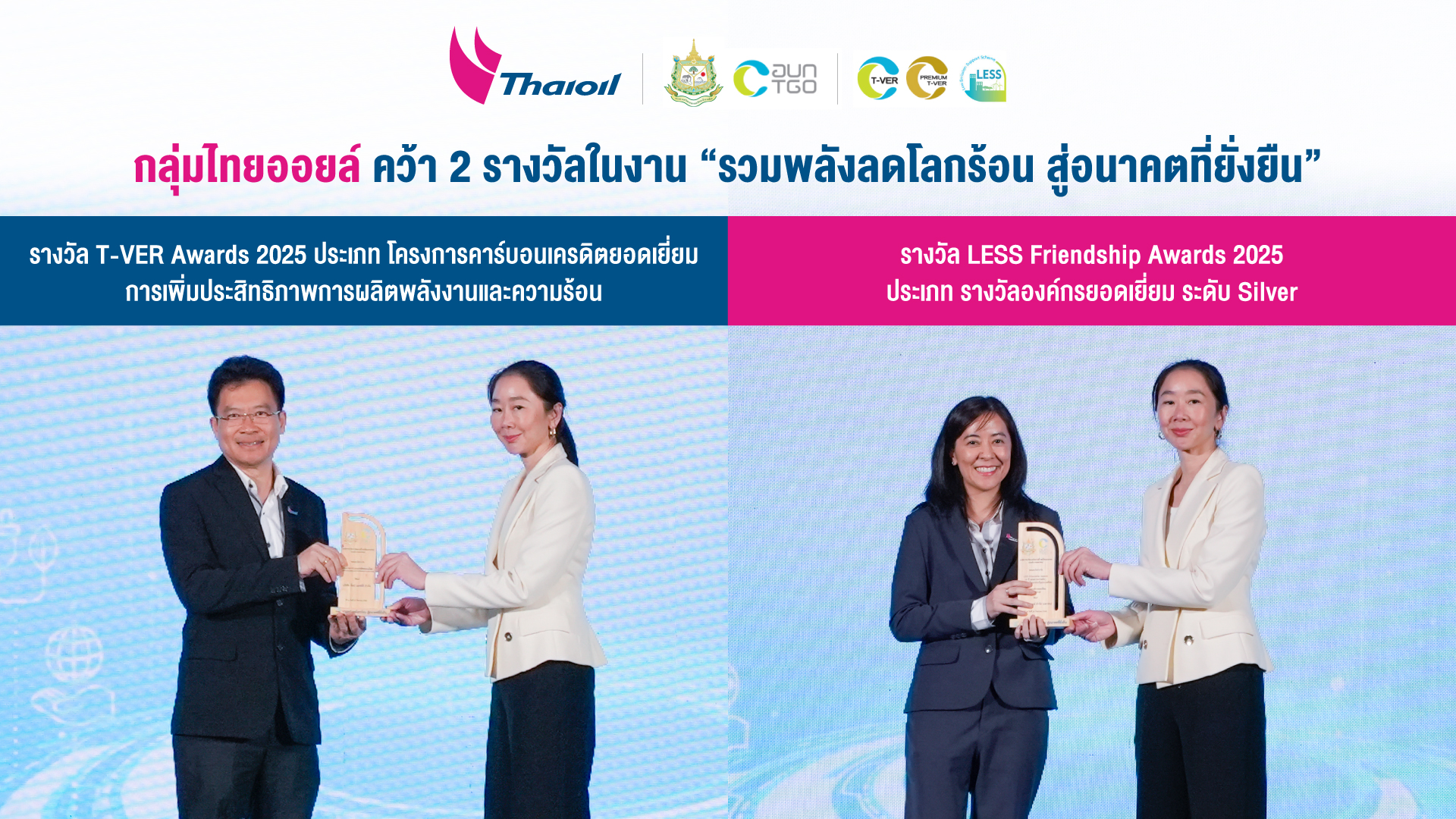 กรุงเทพฯ 30 ก.ย. – เมื่อเร็วๆ นี้ นายภูพิงค์ ทวีทรัพย์ ผู้จัดการฝ่ายความยั่งยืนองค์กร และ น.ส.กิติยา ภักดีรัตนมิตร ผู้จัดการ-งานบริหารจัดการก๊าซเรือนกระจก บริษัท ไทยออยล์ จำกัด (มหาชน) เป็นผู้แทนกลุ่มไทยออยล์ รับมอบรางวัล T-VER Awards 2025 ประเภทรางวัลโครงการคาร์บอนเครดิตยอดเยี่ยม ประเภทการเพิ่มประสิทธิภาพการผลิตพลังงานและความร้อน ในฐานะที่บริษัท ท็อป เอสพีพี จำกัด มีโครงการที่มีปริมาณคาร์บอนเครดิตที่ได้รับการรับรองจากองค์การบริหารจัดการก๊าซเรือนกระจก (องค์การมหาชน) (อบก.) สูงสุดในประเภทดังกล่าว และรางวัล LESS Friendship Awards 2025 ประเภทรางวัลองค์กรยอดเยี่ยม ระดับ Silver ในฐานะที่บริษัท ไทยออยล์ จำกัด (มหาชน) มีบทบาทสำคัญในการลดการปล่อยก๊าซเรือนกระจกผ่านโครงการสนับสนุนกิจกรรมลดก๊าซเรือนกระจก (LESS) อย่างต่อเนื่อง ในงาน “รวมพลังลดโลกร้อน สู่อนาคตที่ยั่งยืน” จาก อบก. โดยมี ดร.ชญานันท์ ภักดีจิตต์ ปลัดกระทรวงทรัพยากรธรรมชาติและสิ่งแวดล้อม เป็นประธานในพิธี ณ ห้องอัศวิน แกรนด์ บอลรูม โรงแรมอัศวิน แกรนด์ คอนเวนชั่น