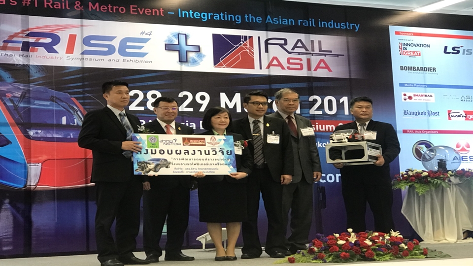 มีการนำเสนอผลงานวิจัยและพัฒนาด้านการคมนาคมระบบรางที่ได้ส่งมอบผลงานวิจัยเรื่อง “การพัฒนารถยนต์รางขนาดเบาวิ่งบนรางรถไฟมิสเตอร์เกจหรือถนน” ของคณะนักวิจัยมหาวิทยาลัยเทคโนโลยีราชมงคลอีสานวิทยาเขตขอนแก่น