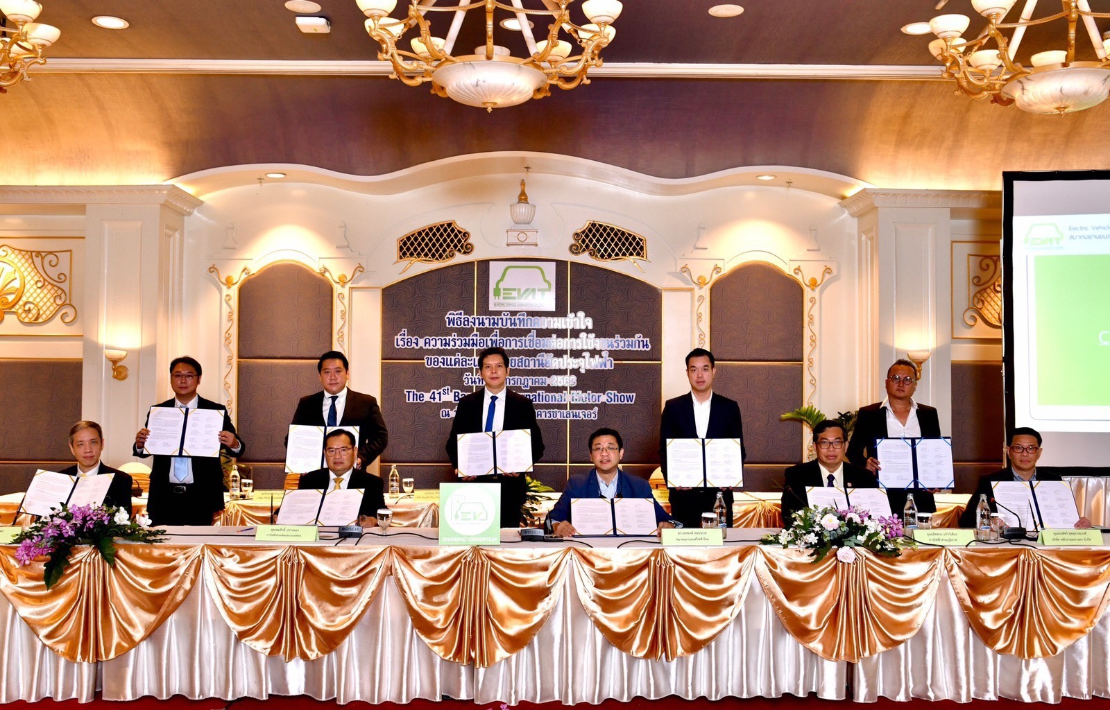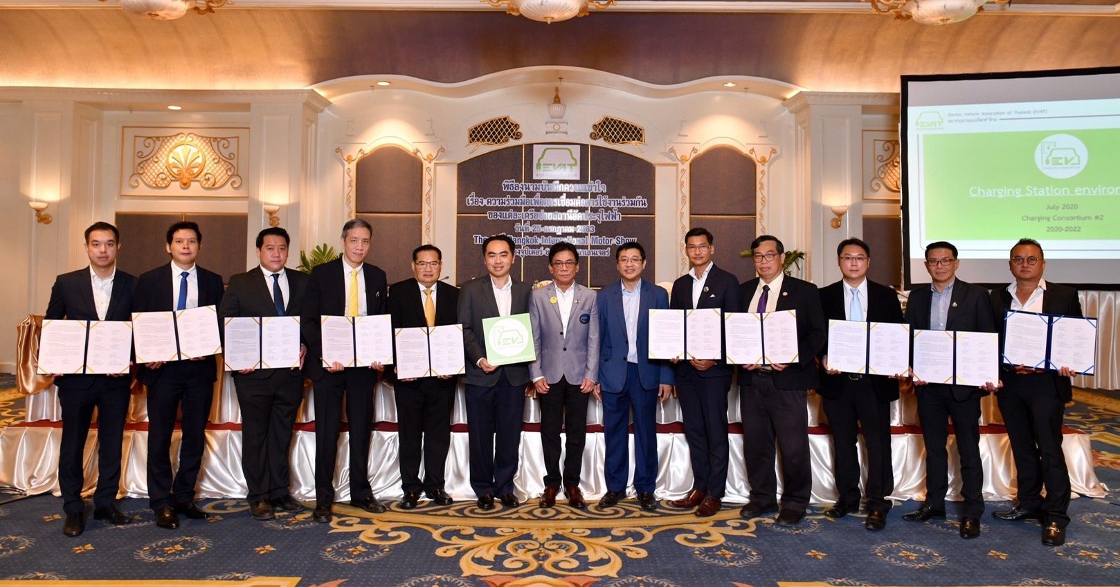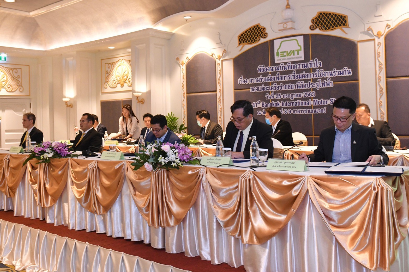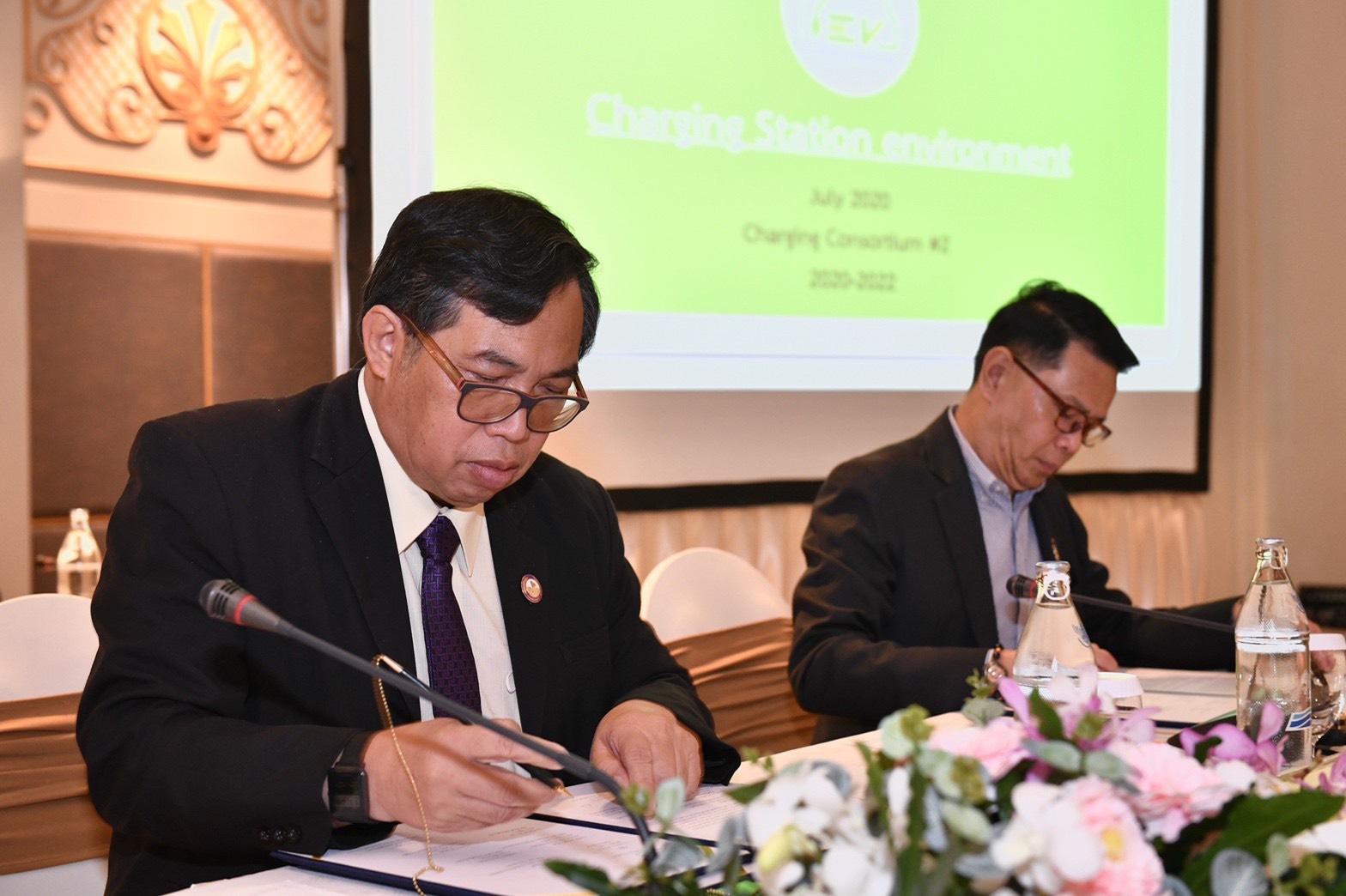 นายเลิศชาย แก้ววิเชียร ผู้ช่วยผู้ว่าการการไฟฟ้าส่วนภูมิภาค (PEA) ร่วมลงนามบันทึกความเข้าใจ ความร่วมมือเพื่อการเชื่อมต่อการใช้งานร่วมกันของแต่ละเครือข่ายสถานีอัดประจุไฟฟ้า สำหรับยานยนต์ไฟฟ้าปลั๊กอิน-ไฮบริด (PHEV) และยานยนต์ไฟฟ้าแบตเตอรี่ (BEV) ระหว่างสมาคมยานยนต์ไฟฟ้าไทยและเครือข่ายพันธมิตรทางธุรกิจอีก 10 หน่วยงาน ได้แก่