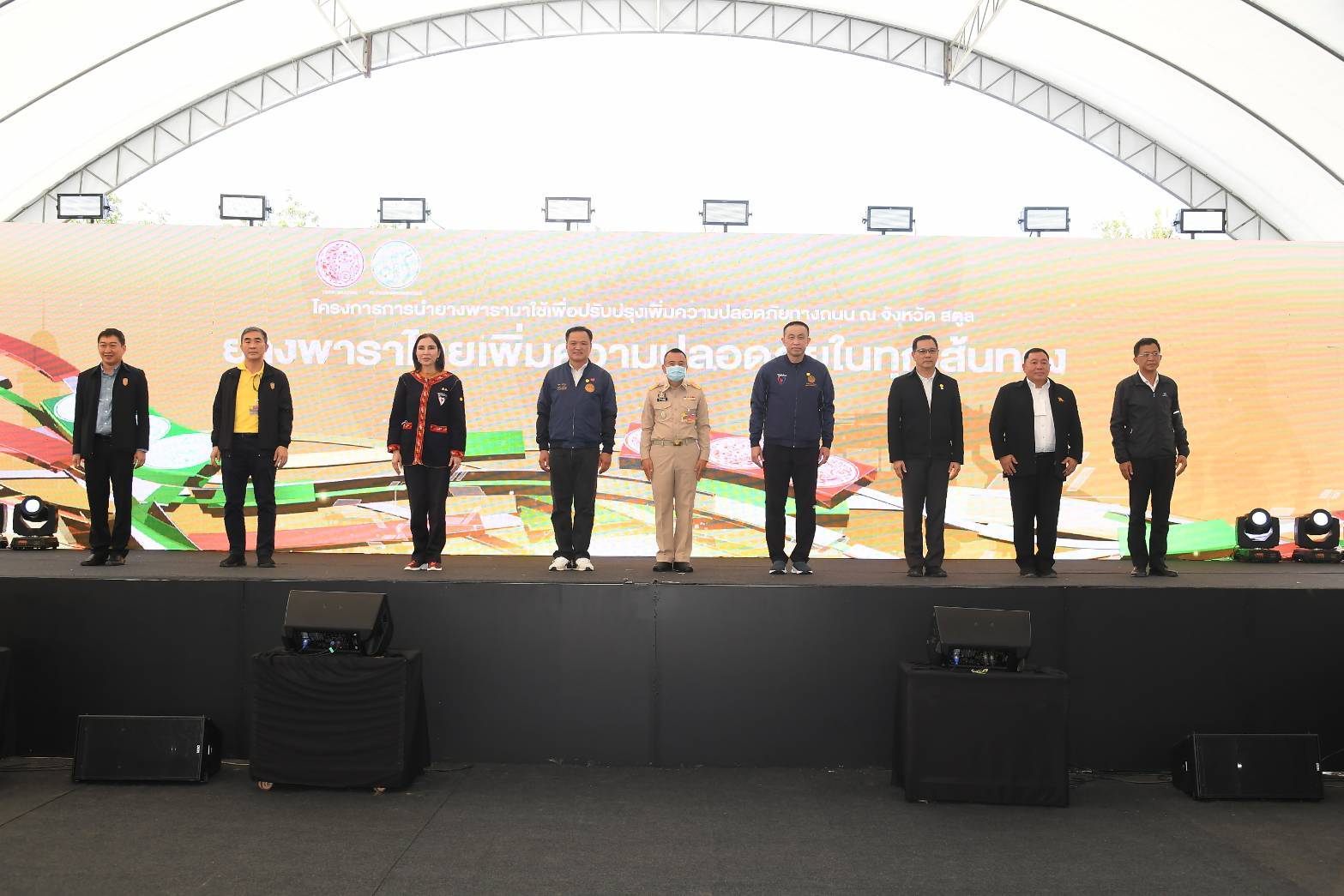นายอนุทิน ชาญวีรกูล รองนายกรัฐมนตรี และรัฐมนตรีว่าการกระทรวงสาธารณสุข พร้อมด้วยนายศักดิ์สยาม ชิดชอบ รัฐมนตรีว่าการกระทรวงคมนาคม นางมนัญญา ไทยเศรษฐ์ รัฐมนตรีช่วยว่าการกระทรวงเกษตรและสหกรณ์ ได้ร่วมในพิธีเปิดโครงการนำน้ำยางพารา มาใช้เพื่อปรับปรุงอุปกรณ์เพิ่มความปลอดภัยทางถนน (Kick Off) ที่บริเวณทางหลวงหมายเลข 404 กิโลเมตรที่ 102+150 ตำบลละงู อำเภอละงู จังหวัดสตูล