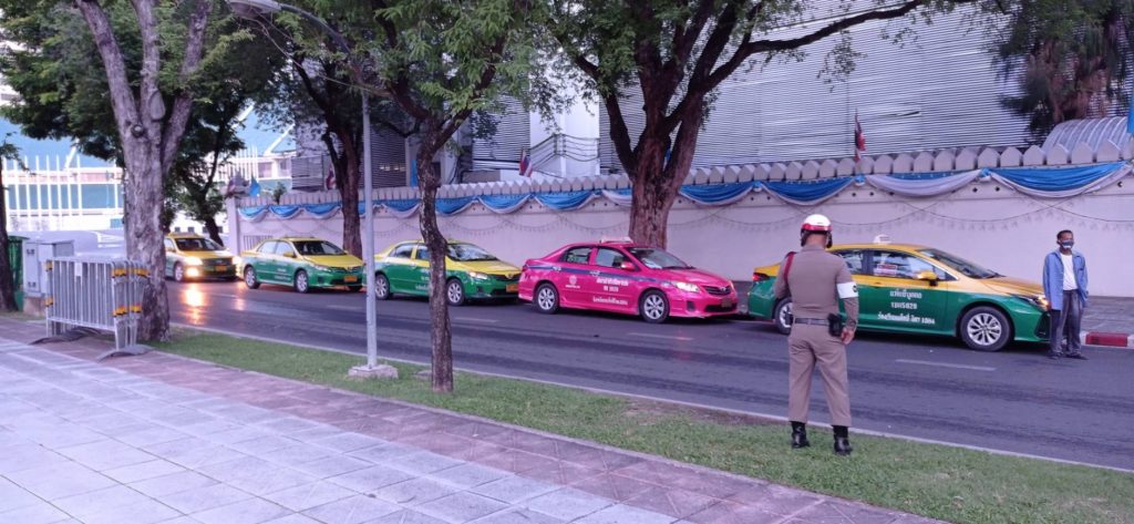 ผู้สื่อข่าวรายงานว่า ในวันนี้ (8 ก.ย. 2563) เวลาประมาณ 09.00 น. สมาคมวิชาชีพผู้ขับขี่รถยนต์สาธารณะแท็กซี่นัดรวมพลคนขับรถแท็กซี่, ผู้ประกอบการอู่แท็กซี่ และสหกรณ์แท็กซี่ทุกกลุ่มที่บริเวณหน้ากระทรวงคมนาคมและทำเนียบรัฐบาล นำโดยนายวรพล แกมขุนทด นายกสมาคมฯ ทั้งนี้ เพื่อเรียกร้องและรอคำตอบจากพลเอกประยุทธ์ จันทร์โอชา นายกรัฐมนตรี โดยในการนัดรวมพลดังกล่าว ทางสมาคมฯ ได้ทำหนังสือถึงผู้กำกับสถานีตำรวจนครบาลนางเลิ้ง เพื่อขอใช้พื้นที่บริเวณถนนราชดำเนินนอก (หน้ากระทรวงคมนาคม) และบริเวณหน้าทำเนียบรัฐบาล ตั้งแต่เวลา 06.00 น.