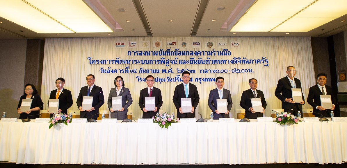 สำนักงานพัฒนารัฐบาลดิจิทัล (องค์การมหาชน) หรือ สพร. จับมือ 9 หน่วยงาน ได้แก่ สำนักงานคณะกรรมการพัฒนาระบบราชการ สมาคมธนาคารไทย สมาคมสถาบันการเงินของรัฐ บริษัท เนชั่นแนลดิจิทัลไอดี จำกัด กรมสรรพากร กรมพัฒนาธุรกิจการค้า กรมที่ดิน สำนักงานหลักประกันสุขภาพแห่งชาติ และกองทุนให้กู้ยืมเพื่อการศึกษา ลงนามบันทึกความร่วมมือโครงการพัฒนาระบบการพิสูจน์และยืนยันตัวตนทางดิจิทัลภาครัฐ นำร่องใช้ Digital ID ในงานบริการดิจิทัลภาครัฐ เพื่อสร้างความมั่นใจในการทำธุรกรรมออนไลน์กับภาครัฐได้สะดวกยิ่งขึ้น