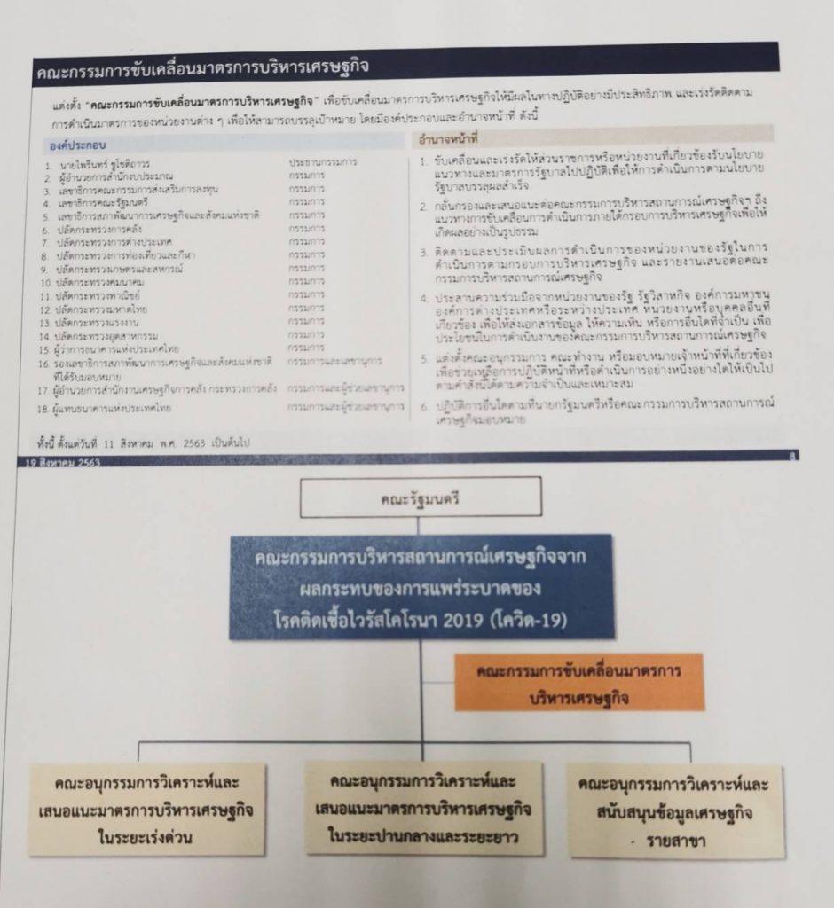 นายไพรินทร์ กล่าวว่า คณะกรรมการฯชุดที่ตนเป็นประธานมีคณะอนุกรรมการ 3 ด้านทั้ง เสนอแนะมาตรการเร่งด่วน,มาตรการระยะปานกลาง-ระยะยาว และ สนับสนุนข้อมูลเศรษฐกิจรายสาขา ซึ่งจะเห็นว่า ศบศ.ตั้งมาวันที่ 13 ส.ค. 63 มีการประชุมไปแล้ว 3 ครั้ง ทุก 2 สัปดาห์ ประชุมเสร็จก็เสนอมาตรการ เข้า ครม.ทันที เพื่อให้ขับเคลื่อนเศรษฐกิจ โดยขอยืนยันว่า มาตรการต่างๆมีรอบด้าน ทั้งการกระตุ้นการจ้างงาน การท่องเที่ยว การช่วยเหลือเอสเอ็มอี การช่วยเหลือรากหญ้า การผลักดัน เมกะโปรเจกต์ที่ค้าง และที่เสนอใหม่ กลไกทางด้านการเงิน การลงทุน ซึ่งนับจากนี้ไปก็จะมีโครงการทยอยออกมาเรื่อยๆ โดยเป้าหมายคือ ทำให้เศรษฐกิจขยับตัวดีขึ้น ไตรมาส 3 และ 4 จะต้องดีกว่าไตรมาส 2 /63 ที่ติดลบถึงร้อยละ 12 และจะพยายามทำให้ดีที่สุด จากที่หลายฝ่ายมองว่า จีดีพีปีนี้จะติดลบถึงร้อยละ 8-9