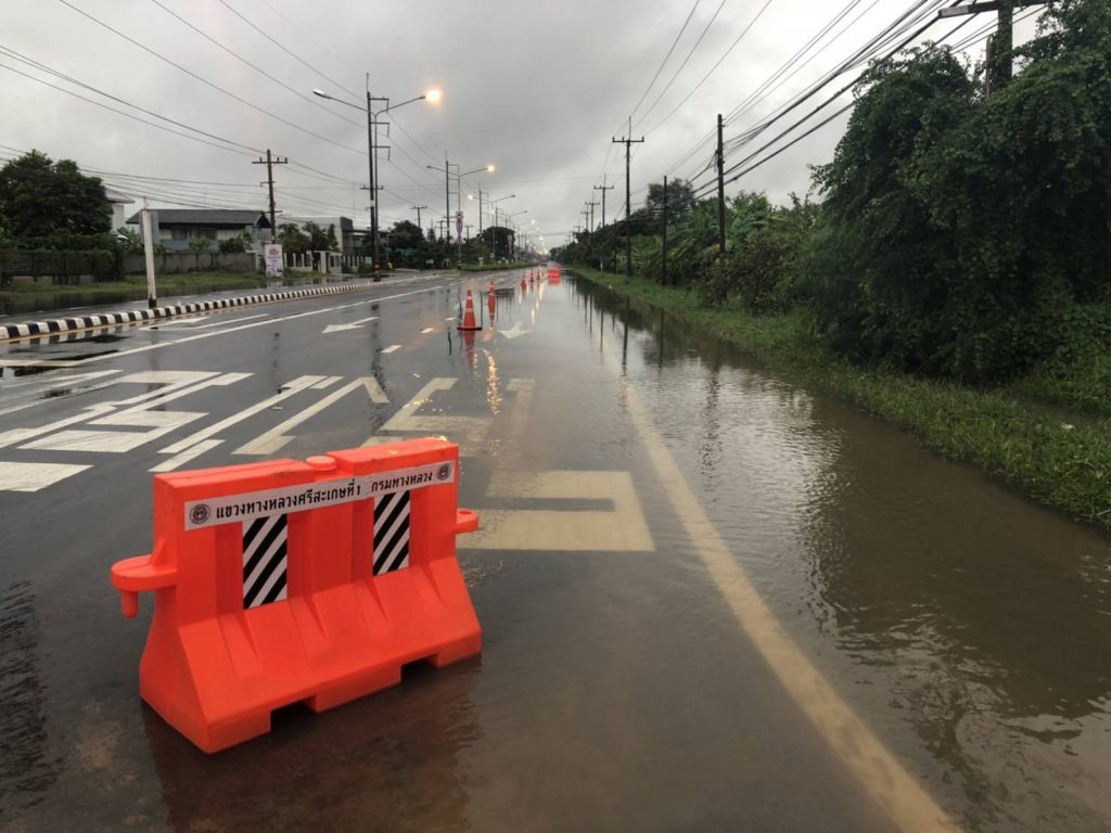 จังหวัดศรีสะเกษ ทางหลวง 221 ศรีสะเกษ-ภูเงิน อำเภอพยุห์ ระดับน้ำสูง 20 เซนติเมตร / ทางหลวง 226 ห้วยทับทัน-ศรีสะเกษ อำเภออุทุมพรพิสัย ระดับน้ำสูง 20 เซนติเมตร และทางหลวง 2085 กันทรลักษ์-กันทรารมย์ อำเภอเบญจลักษ์ เสาไฟฟ้าล้มขวางถนน การผ่านได้ไม่สะดวก