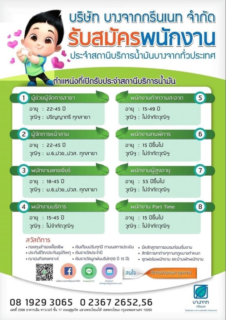 นายชัยวัฒน์ โควาวิสารัช ประธานเจ้าหน้าที่บริหารและกรรมการผู้จัดการใหญ่ บริษัท บางจาก คอร์ปอเรชั่น จำกัด (มหาชน) กล่าวว่า บริษัทประกาศแผนรับสมัครงานเพิ่ม 700 ตำแหน่ง โดยเป็นในส่วนของเครือกรีนเนท 600 ตำแหน่ง และร้านกาแฟอินทนิล 100 ตำแหน่ง