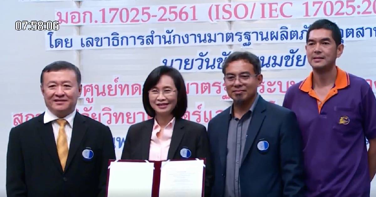 ดร.ชุติมา เอี่ยมโชติชวลิต ผู้ว่าการสถาบันวิจัยวิทยาศาสตร์และเทคโนโลยีแห่งประเทศไทย หรือ วว. รับมอบใบรับรองความสามารถห้องปฎิบัติการ มอก.17025-2561 (ISO/EC 17025 : 2017 ) จากนายวันชัย พนมชัย เลขาธิการสำนักงานมาตรฐานผลิตภัณฑ์อุตสาหกรรม หรือ สมอ.