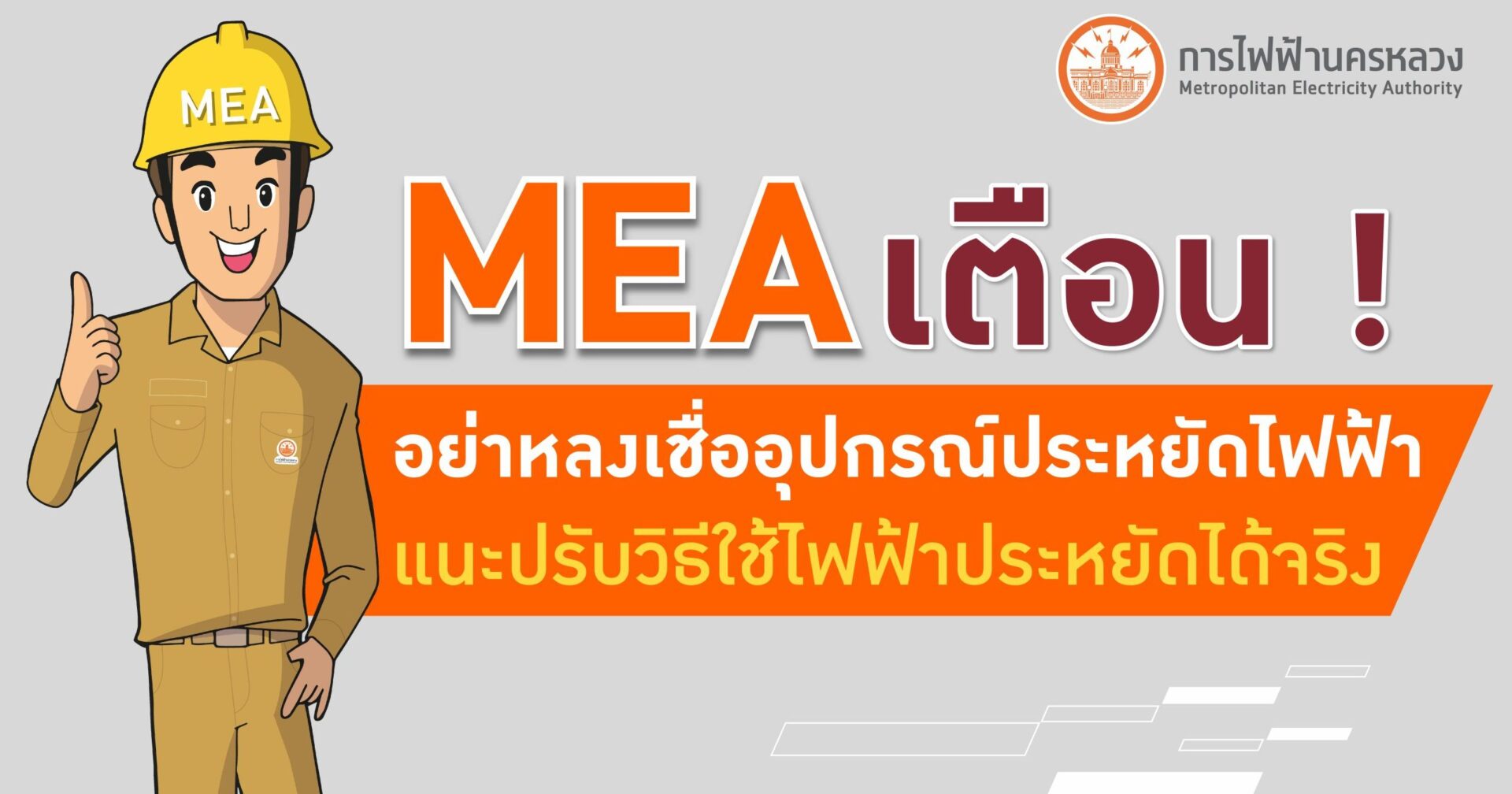 นางสาวผาสุก สัมปุณณะโชติ ผู้อำนวยการฝ่ายสื่อสารองค์กร การไฟฟ้านครหลวง หรือ MEA เปิดเผยว่า MEA ห่วงใยประชาชนจากกรณีมีการหลอกลวงโฆษณาจำหน่ายอุปกรณ์ประหยัดไฟฟ้าบนสื่อสังคมออนไลน์ โดยกล่าวอ้างว่าสามารถช่วยลดค่าไฟฟ้าลงได้ โดยมีผู้ใช้ไฟฟ้าหลงเชื่อสั่งซื้อไปใช้งานเป็นจำนวนมาก ซึ่งอุปกรณ์ดังกล่าวไม่สามารถช่วยลดค่าไฟฟ้าได้จริงตามที่กล่าวอ้าง MEA ในฐานะหน่วยงานรัฐวิสาหกิจที่จำหน่ายพลังงานไฟฟ้าในเขตกรุงเทพมหานคร นนทบุรี และสมุทรปราการ จึงขอเตือนประชาชนอย่าหลงเชื่อตกเป็นเหยื่อมิจฉาชีพดังกล่าว อีกทั้ง หากนำอุปกรณ์ดังกล่าวฯ มาใช้อาจส่งผลให้ระบบไฟฟ้าผิดปกติหรือกระทบต่อระบบจำหน่ายไฟฟ้า ซึ่งอาจมีความผิดตามกฎหมาย