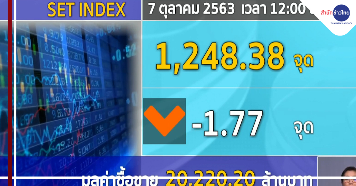 7 ต.ค. – ตลาดหุ้นไทย ปรับตัวลงตามตลาดหุ้นต่างประเทศ เนื่องจากมีปัจจัยลบจากนายโดนัลด์ ทรัมป์ ประธานาธิบดีสหรัฐ สั่งระงับการเจรจาเกี่ยวกับการออกมาตรการกระตุ้นเศรษฐกิจรอบใหม่ ซึ่งจะทำให้การฟื้นตัวเศรษฐกิจสหรัฐฯสะดุด กระทบบรรยากาศการลงทุนไปด้วย ส่วนปัจจัยในประเทศ ให้เกาะติดการประชุม ศบค.วันนี้ เล็งออกมาตรการกระตุ้นเศรษฐกิจเพิ่ม