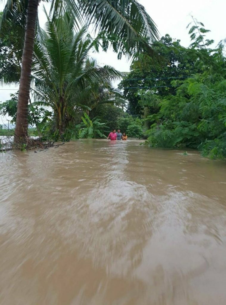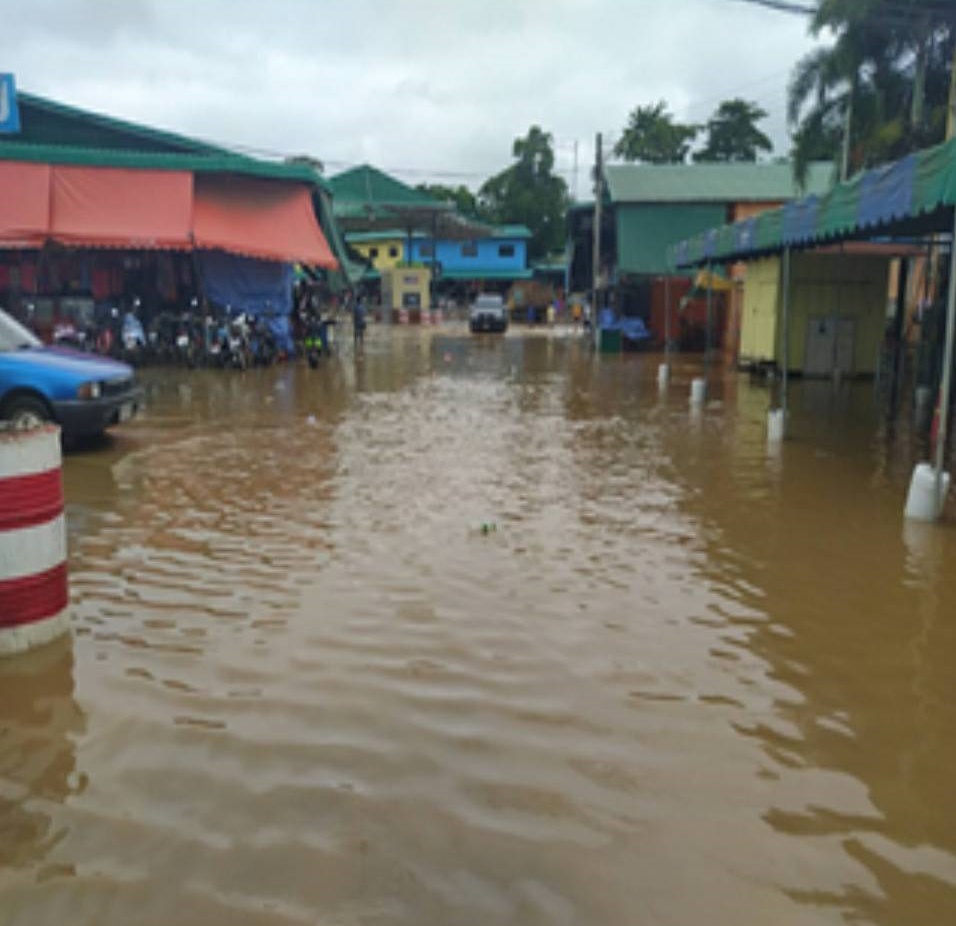 จ.กาญจนบุรี ฝนตกลงในพื้นที่และอำเภอสวนผึ้งอย่างหนักและต่อเนื่องส่งผลให้มีปริมาณน้ำสะสมในลำภาชีเออล้นตลิ่งเข้าท่วมบ้านเรือนราษฎรและพื้นที่เกษตรกรรม น้ำล้นตลิ่งในเขตพื้นที่หมู่ 1 3 4 และ 6 ต.หนองไผ่และ ต.ด่านมะขามเตี้ย อ.ด่านมะขามเตี้ย ความเสียหายเบื้องต้น 140 ครัวเรือน พื้นที่ 2,000 ไร่ ระดับน้ำที่สถานีวัดน้ำท่า K.62 บ้านหนองไผ่ อ.ด่านมะขามเตี้ย สูงกว่าตลิ่ง 85 เซนติเมตร แนวโน้มลดลง