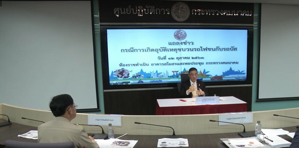 ก่อนการประชุมคณะรัฐมนตรี นายศักดิ์สยาม ชิดชอบ รัฐมนตรีว่าการกระทรวงคมนาคม ให้สัมภาษณ์ถึงอุบัติเหตุรถไฟชนกับรถบัสที่จังหวัดฉะเชิงเทราว่า ได้สั่งให้สำรวจว่า มีจุดตัดทั่วประเทศจำนวนเท่าใดที่ยังไม่มีอุปกรณ์ดูแลความปลอดภัย ขณะนี้กรมการขนส่งทางราง ได้ขออนุมัติงบประมาณจากกองทุนความปลอดภัยของกรมขนส่งฯ ในการศึกษาและดำเนินการติดตั้งให้ครบถ้วนทั่วประเทศ นอกจากนี้จะพิจารณาว่า จุดที่มีการขออนุญาตอย่างไม่ถูกต้องมีความจำเป็นหรือไม่ ที่จะต้องทำให้เป็นจุดตัดอยู่ ถ้าไม่จำเป็นต้องปิด หรือ ถ้าจำเป็นต้องทำให้ถูกต้อง พร้อมยอมรับว่า ในการพิจารณางบประมาณรายจ่ายปี 64 มีการตัดงบในการทำที่กั้นทางรถไฟจริง