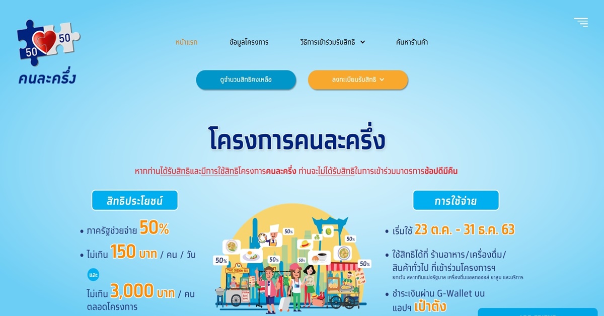 นายพรชัย กล่าวเพิ่มเติมว่า ปัจจุบันมีผู้ประกอบการร้านค้าทั่วประเทศสมัครเข้าร่วมโครงการแล้วกว่า 240,000 ร้านค้า ขอเชิญชวนให้ผู้ประกอบการรายย่อยที่สนใจโดยเฉพาะหาบเร่ แผงลอย รีบมาลงทะเบียนเข้าร่วมโครงการผ่านเว็บไซต์ www.คนละครึ่ง.com หรือสมัครโดยตรง ณ สาขาของธนาคารกรุงไทย จำกัด (มหาชน) เพื่อเตรียมรองรับการใช้จ่ายของประชาชนที่จะเริ่มการใช้จ่ายตั้งแต่วันที่ 23 ตุลาคม 2563 เป็นต้นไป.-สำนักข่าวไทย
