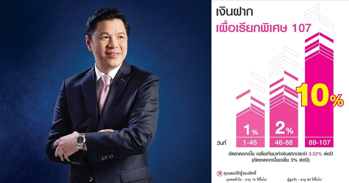 นายวิทัย รัตนากร ผู้อำนวยการ ธนาคารออมสิน เปิดเผยว่า ธนาคารฯ ได้นำนวัตกรรมทางการเงินครบวงจรเข้าร่วมงานมหกรรมการเงิน Money Expo 2020 ครั้งที่ 20 ระหว่างวันที่ 22-25 ตุลาคม 2563 ณ อาคารชาเลนเจอร์ 1-2 อิมแพคเมืองทองธานี โดยปีนี้นำเสนอเงินฝากเผื่อเรียกพิเศษ 107 ในโอกาสที่ปีนี้ธนาคารออมสินมีวาระครบ 107 ปี โดยมีระยะเวลาฝาก 107 วัน อัตราดอกเบี้ยแบบขั้นบันได (Step Up) วันที่ 1-45 = 1.00% ต่อปี วันที่ 46- 88 = 2.00% ต่อปี และ วันที่ 89-107 = 10.00% ต่อปี คิดเป็นอัตราดอกเบี้ยสุทธิเฉลี่ย 3.00% ต่อปี ดอกเบี้ยได้รับยกเว้นภาษี รับฝากเฉพาะบุคคลธรรมดา อายุตั้งแต่ 15 ปีขึ้นไป ฝากได้คนละ 1 บัญชี เปิดบัญชีขั้นต่ำ 10,000 บาท ฝากสูงสุดไม่เกินรายละ 500,000 บาท โดยผู้ฝากสามารถรับใบจองสิทธิ์ภายในงานทั้ง 4 วัน รวม 1,400 สิทธิ์ แบ่งเป็น 7 รอบๆ ละ 200 สิทธิ์ (ผู้ฝากทั่วไป 100 สิทธิ์ ผู้ฝากอายุ 60 ปีขึ้นไป 100 สิทธิ์) ซึ่งจะเปิดบัญชีภายในงานหรือนำไปเปิดบัญชีที่สาขาใดก็ได้ระหว่างวันที่ 22 ตุลาคม ถึงวันที่ 1 พฤศจิกายน 2563 ทั้งนี้ผู้ฝากต้องใช้บริการ Mobile Banking (MyMo) และบัตรเดบิตของธนาคารออมสินควบคู่ไปด้วย