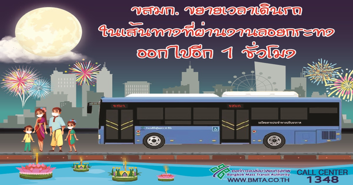 นายสุระชัย เอี่ยมวชิรสกุล ผู้อำนวยการ องค์การขนส่งมวลชนกรุงเทพ (ขสมก.) เปิดเผยว่า วันเสาร์ที่ 31 ตุลาคม 2563 ตรงกับวันลอยกระทงประจำปี 2563 ซึ่งหลายหน่วยงานทั้งภาครัฐและเอกชน เช่น ไอคอนสยาม, เอเชียทีค เดอะริเวอร์ฟร้อนท์, สะพานพระราม 8, จุฬาลงกรณ์มหาวิทยาลัย, มหาวิทยาลัยธรรมศาสตร์ ท่าพระจันทร์, มหาวิทยาลัยเกษตรศาสตร์ บางเขน, มหาวิทยาลัยรามคำแหง หัวหมาก และสวนสาธารณะ 30 แห่งในกรุงเทพฯ เป็นต้น ได้จัดงานลอยกระทง เพื่อสืบสานประเพณีไทย ขสมก.จึงเตรียมจัดเดินรถโดยสาร 2,866 คัน รวม 22,474 เที่ยว พร้อมขยายเวลาเดินรถเส้นทางที่วิ่งผ่านสถานที่จัดงานวันลอยกระทง ประจำปี 2563 ออกไปอีก 1 ชั่วโมง เพื่ออำนวยความสะดวกปลอดภัยสร้างความมั่นใจให้กับประชาชนที่จะเดินทางไปเที่ยวงาน