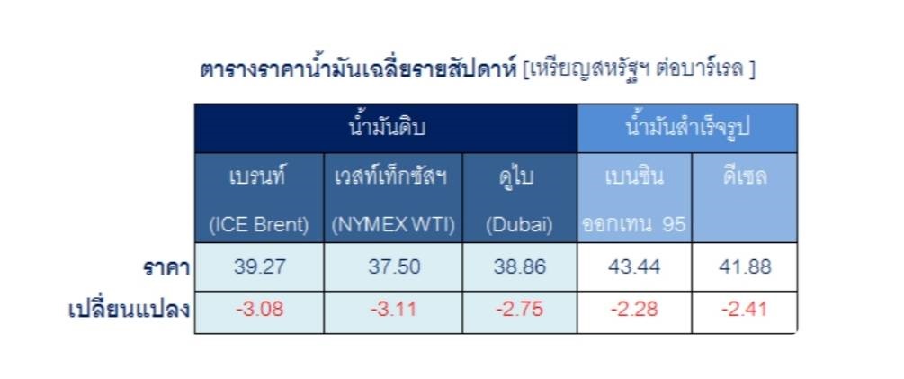 บมจ.ไทยออยล์คาดราคาน้ำมันดิบเวสต์เท็กซัสสัปดาห์นี้จะเคลื่อนไหวที่กรอบ 34-39 ดอลลาร์สหรัฐต่อบาร์เรล ส่วนน้ำมันดิบเบรนท์เคลื่อนไหวที่กรอบ 35-40 ดอลลาร์สหรัฐต่อบาร์เรล.-สำนักข่าวไทย