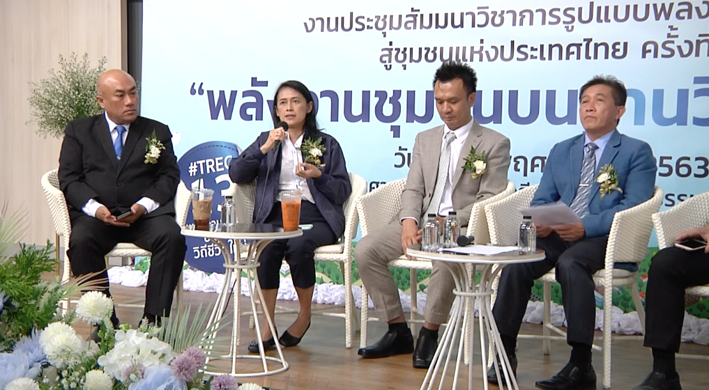 ในโอกาสนี้ นางสาวดวงพร เที่ยงวัฒนธรรม รองกรรมการผู้จัดการใหญ่ กำกับดูแลองค์กรและกิจการสัมพันธ์ บริษัท ปตท จำกัด (มหาชน) บรรยายพิเศษ หัวข้อ “เครือข่ายพลังงานชุมชนสู่การขับเคลื่อนเศรษฐกิจชุมชน” พร้อมแสดงวิสัยทัศน์ต่อการพัฒนาพลังงานชุมชนในท้องถิ่นว่า คือ กลไกในการสร้างการพึ่งพาตนเองอย่างยั่งยืนของชุมชนในประเทศไทย และยังสามารถเชื่อมโยงเทคโนโลยีหรือรูปแบบการบริหารจัดการพลังงานไปสู่การยกระดับคุณภาพเศรษฐกิจชุมชนได้ โดย ปตท.ได้หนุนเสริมการรวมกลุ่มชุมชนภายใต้ชื่อ เครือข่ายชุมชนวิถีพอเพียง 4 ภูมิภาค ปตท.ซึ่งเป็นการต่อยอดและขยายผลมาจากเครือข่ายโครงการรักษ์ป่า สร้างคน 84 ตำบล วิถีพอเพียง ริเริ่มโดย ปตท.ปัจจุบันมีเครือข่ายมีสมาชิกกว่า 105 ตำบลทั่วประเทศ