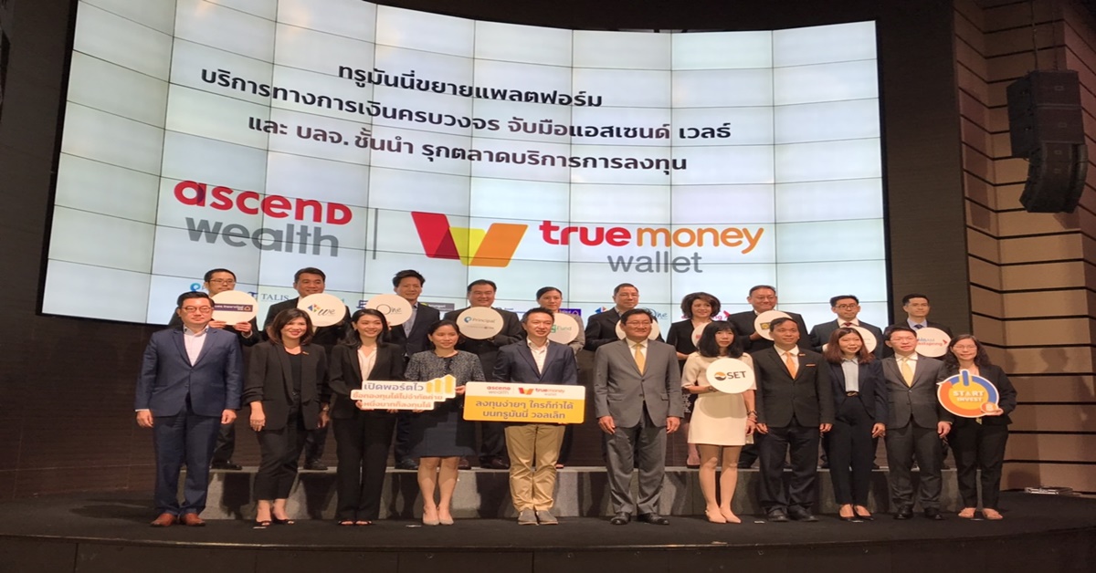 ทรูมันนี่ ร่วมกับบริษัทในเครือ บลน.แอสเซนด์ เวลธ์ จำกัด และบริษัทหลักทรัพย์จัดการกองทุน 10 แห่ง เปิดตัวบริการซื้อขายกองทุนรวมผ่านแอปพลิเคชั่นทรูมันนี่ วอลเล็ต โดยมีนายภากร ปีตธวัชชัย กรรมการและผู้จัดการ ตลาดหลักทรัพย์แห่งประเทศไทย (ตลท.) เป็นประธานเปิดงาน